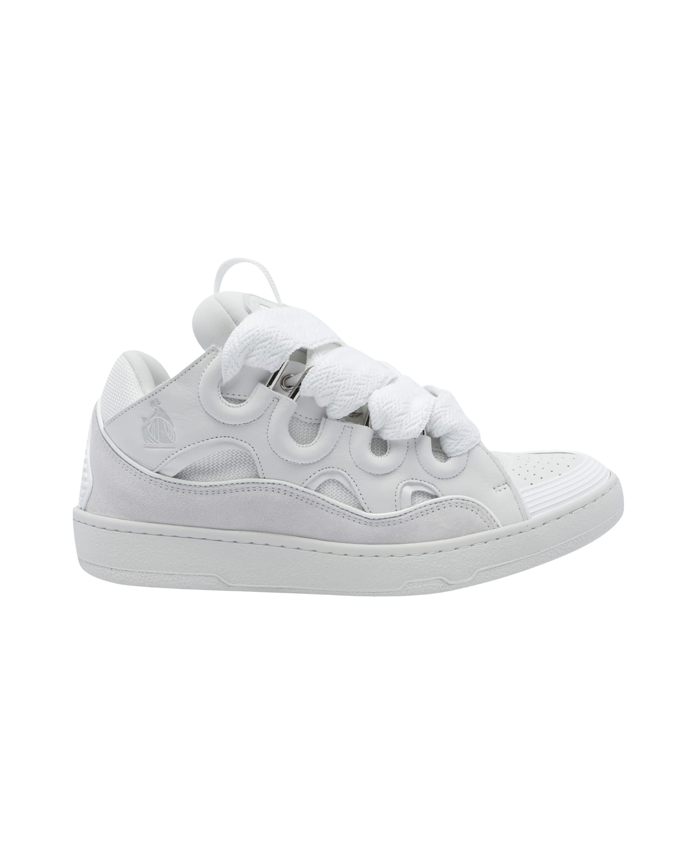 Lanvin white Curb sneakers, laces closure, round toe, logo, fabric upper Composition: 100% Calf Leather, 100% Fabric/rubber Sole