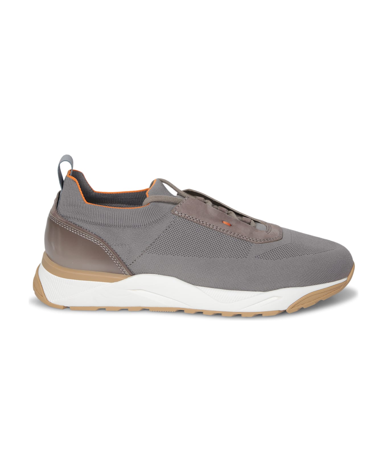 Santoni's Flin Knit Tortora Sneakers blend elegance with modern comfort. Featuring a lightweight knit structure with smooth leather inserts, these sneakers boast a laceless design for quick and practical wear. The two-tone sole adds a dynamic style touch.