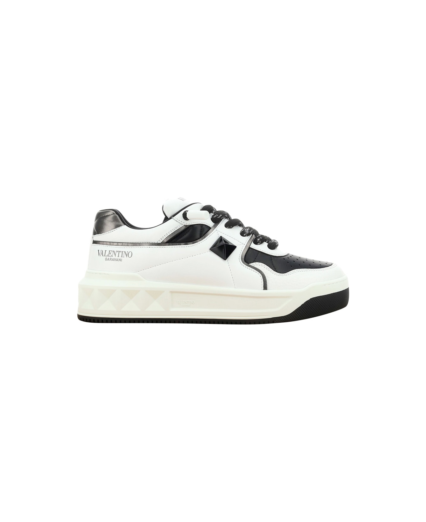 Lambskin one stud xl sneakers by valentino garavani, perforated round toe, flat sole, front lace-up closure, iconic brand monogram printed in contrasting pressure on front tab, iconic brand stud embossed on outer side panel, contrasting label on heel. Composition: 100% % Rubber, 100% % Lamb Ovis Aries Aries