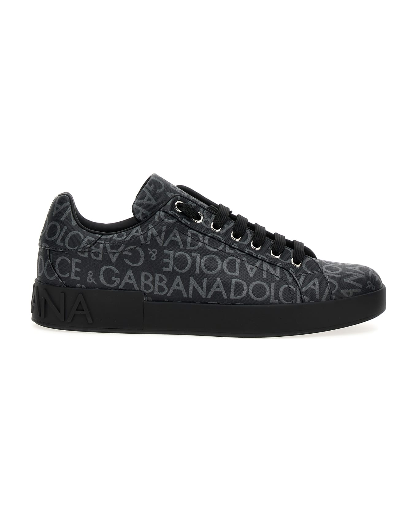 Portofino low sneakers with box sole, laces, and all-over logo print. Composition: