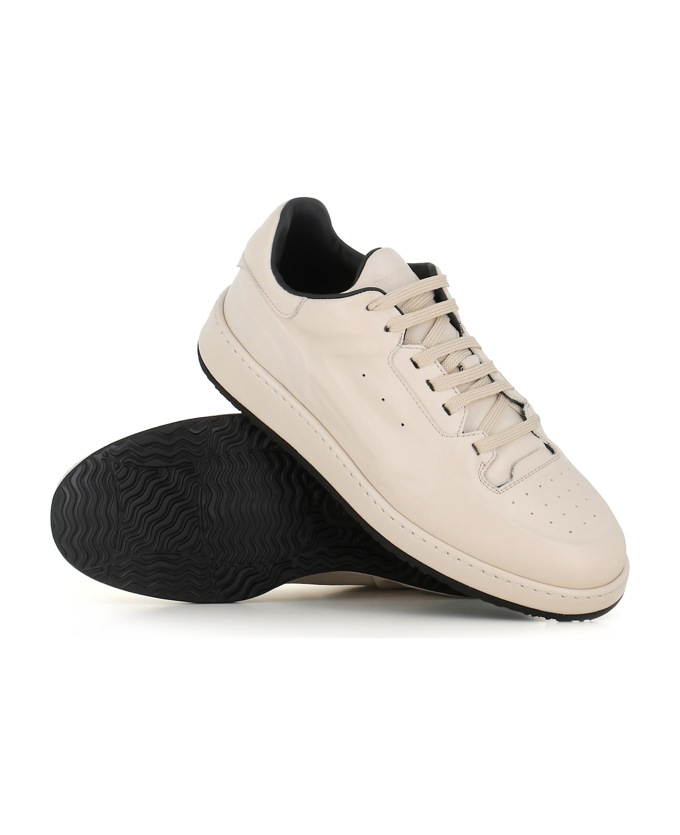 Off white soft leather men's trainers by Officine Creative, featuring by a rounded toe with perforated details. High rubber sole covered in leather. Removable insole. Lined interior. Heel: 4 cm