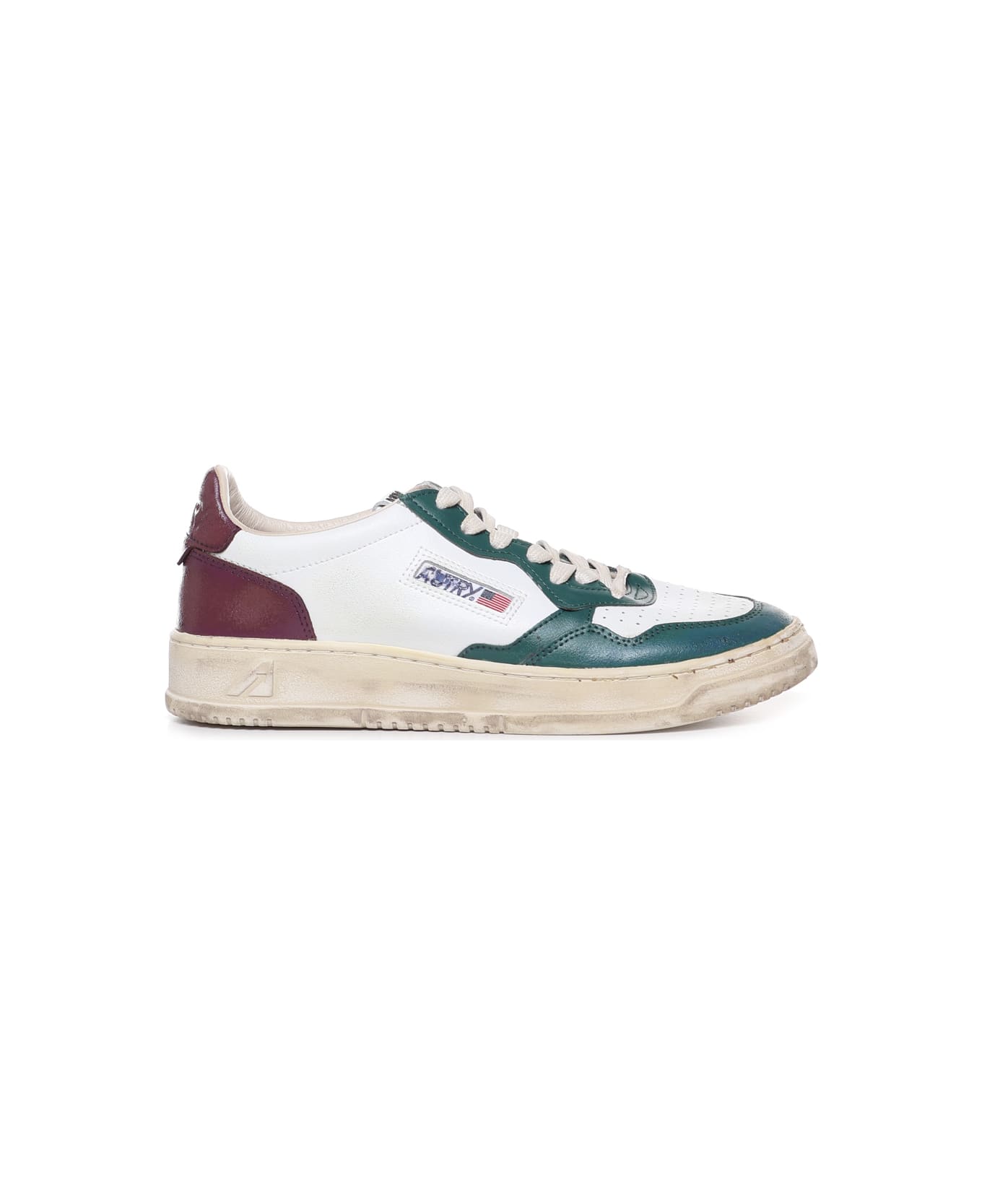 -Upper in smooth leather and split leather -Used effect -Front closure with laces -Round toe -Applied logo on the tongue -Carved Autry logo on the side -Contrasting heel with embossed logo -Used rubber sole -Colour: White, Green, Brown