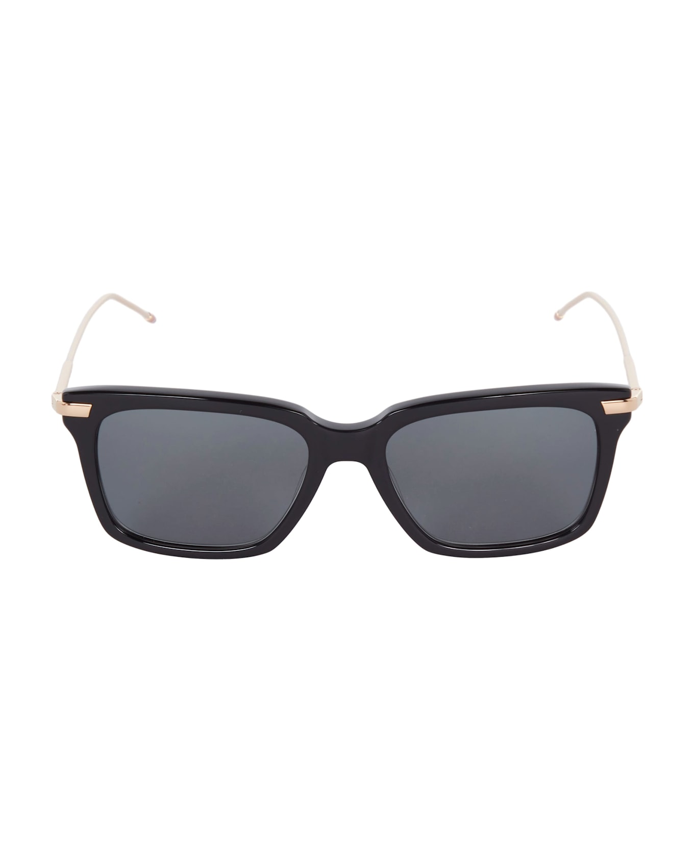 Brand: Thom Browne Model: Rectangular 49 - Black / Gold SKU: Ues701A-G0003-001-49 Type: Sunglasses Color: Black, Gold Material: Acetate, Titanium Lens color: Grey Size: 49mm-19mm-150mm Made in Japan