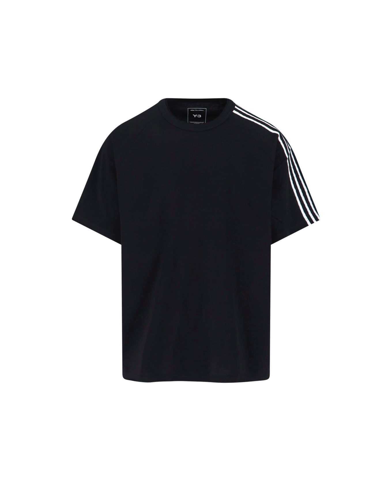 Y-3 3 stripes black cotton crew neck T-shirt with short sleeves, contrasting side details, and straight hem.