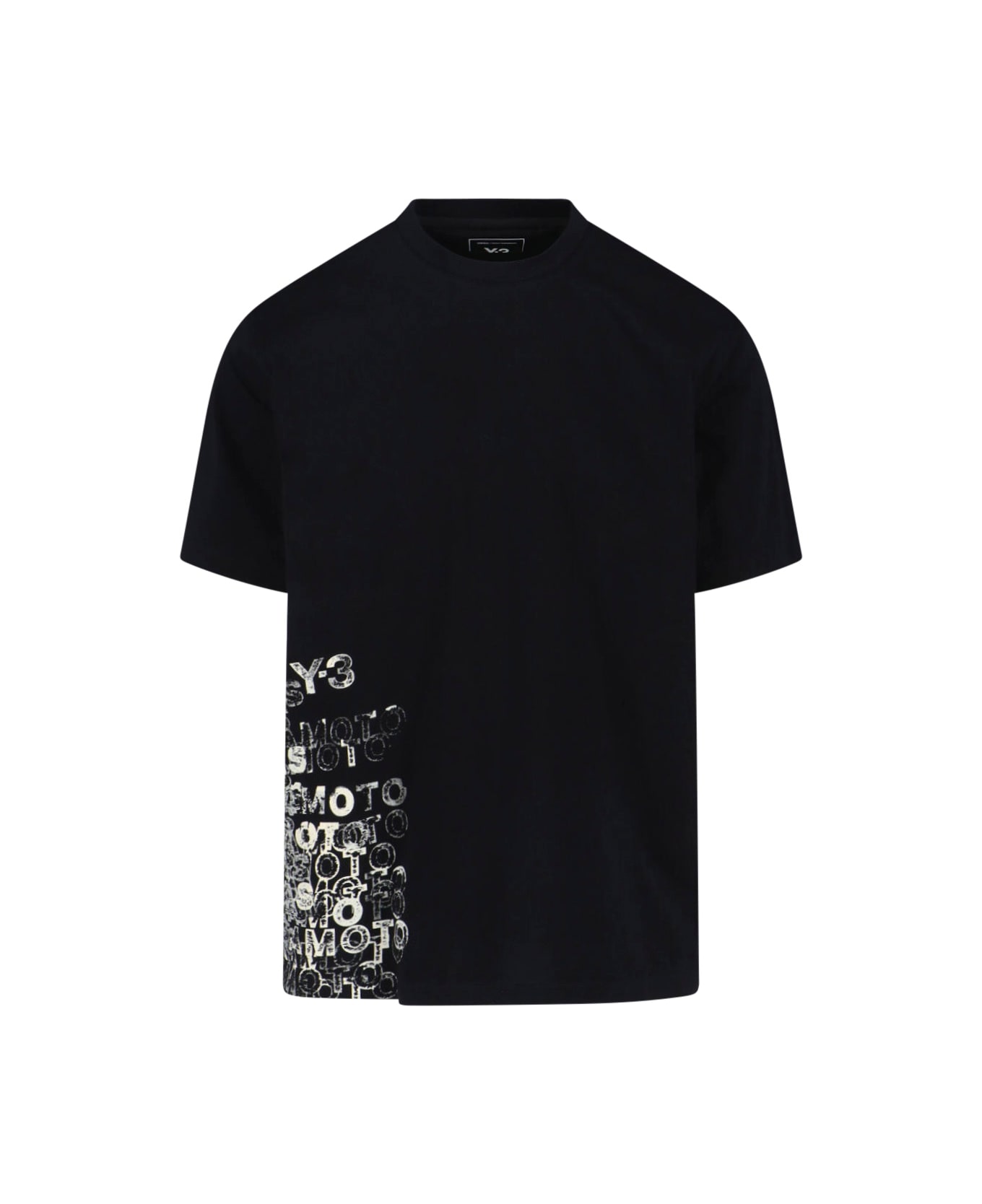Y-3 gfx black cotton crew neck T-shirt with short sleeves, contrast print on the side, and straight hem.