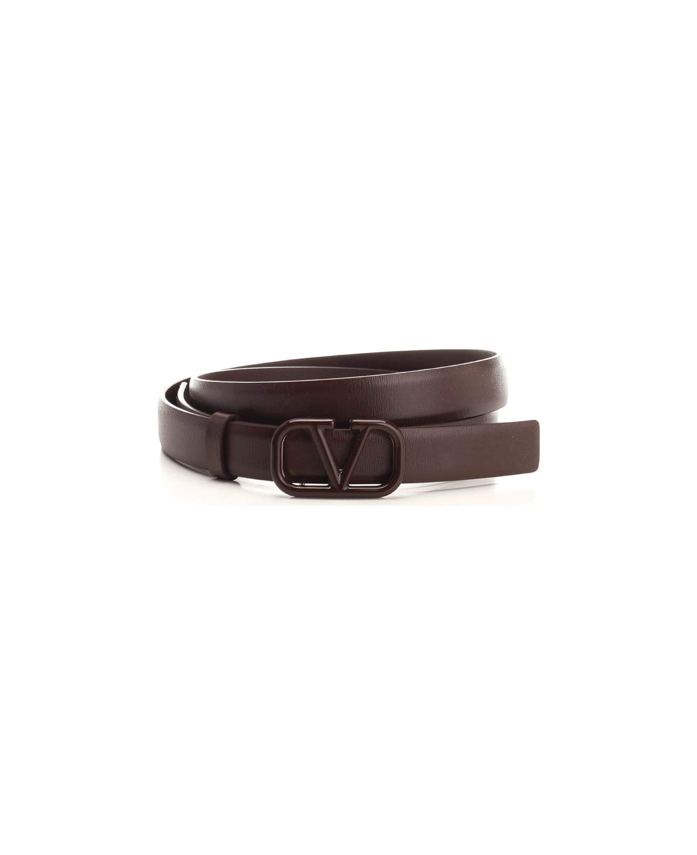 Dark brown leather "V Logo" buckle belt from Valentino Garavani. Composition: I CALF LEATHER - BOS TAURUS