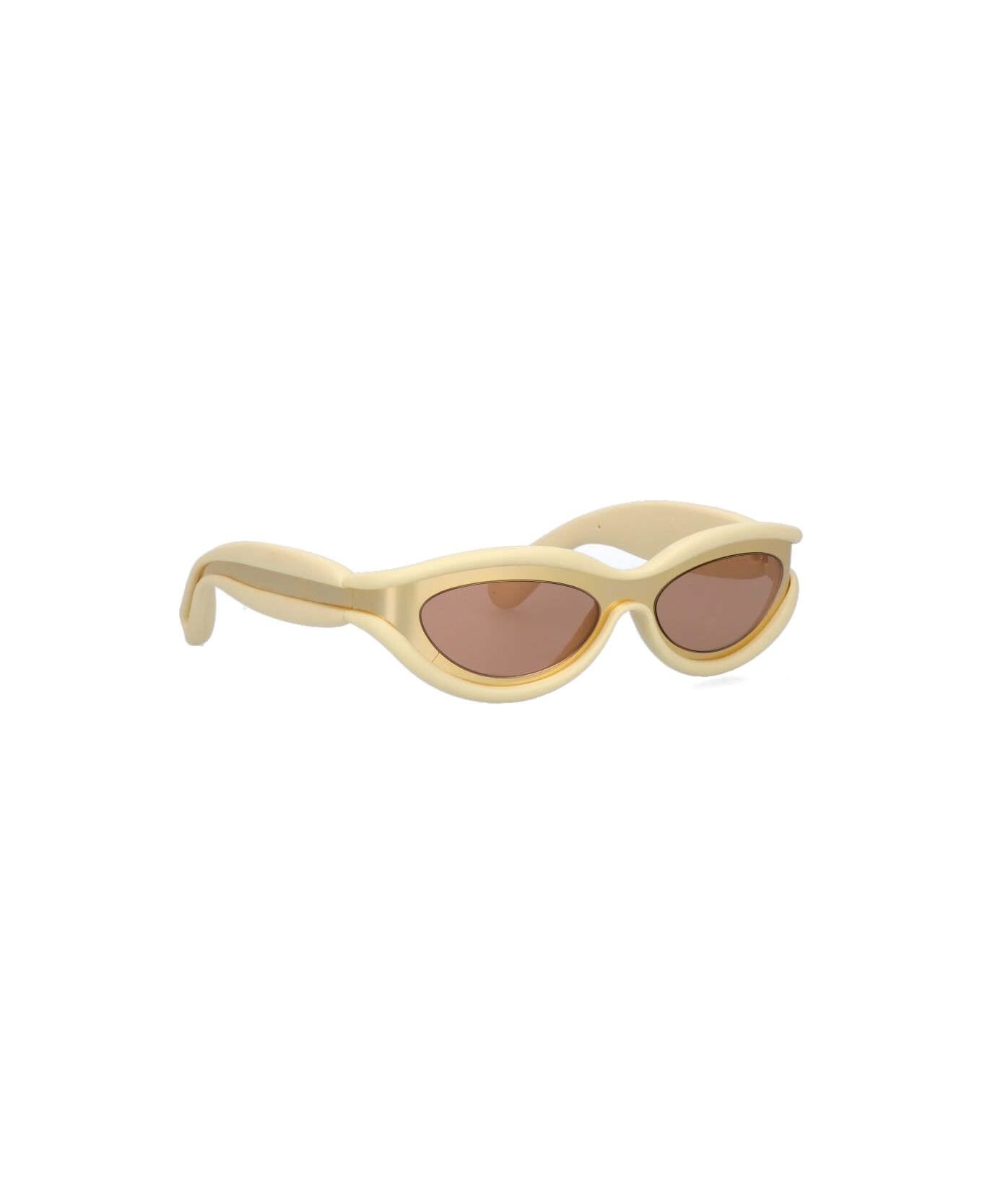 Bottega Veneta 'Hem' Sunglasses, gold metal, tone-on-tone rubber details, round design, brown lenses.