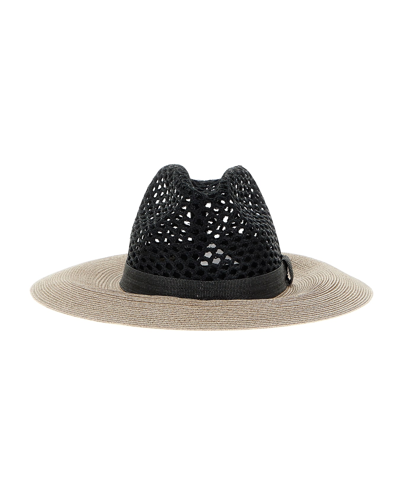 Raffia hat featuring 'Monile' detail around the head.