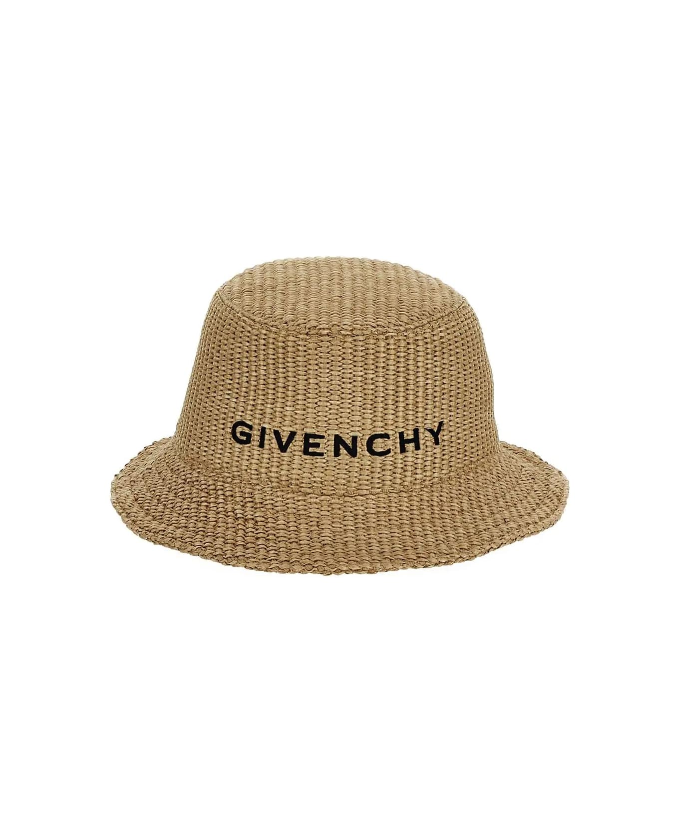 Givenchy reversible bucket hat in natural braided raffia with embroidered black logo on the front. Composition: 52% Cotton 48% Polyamide