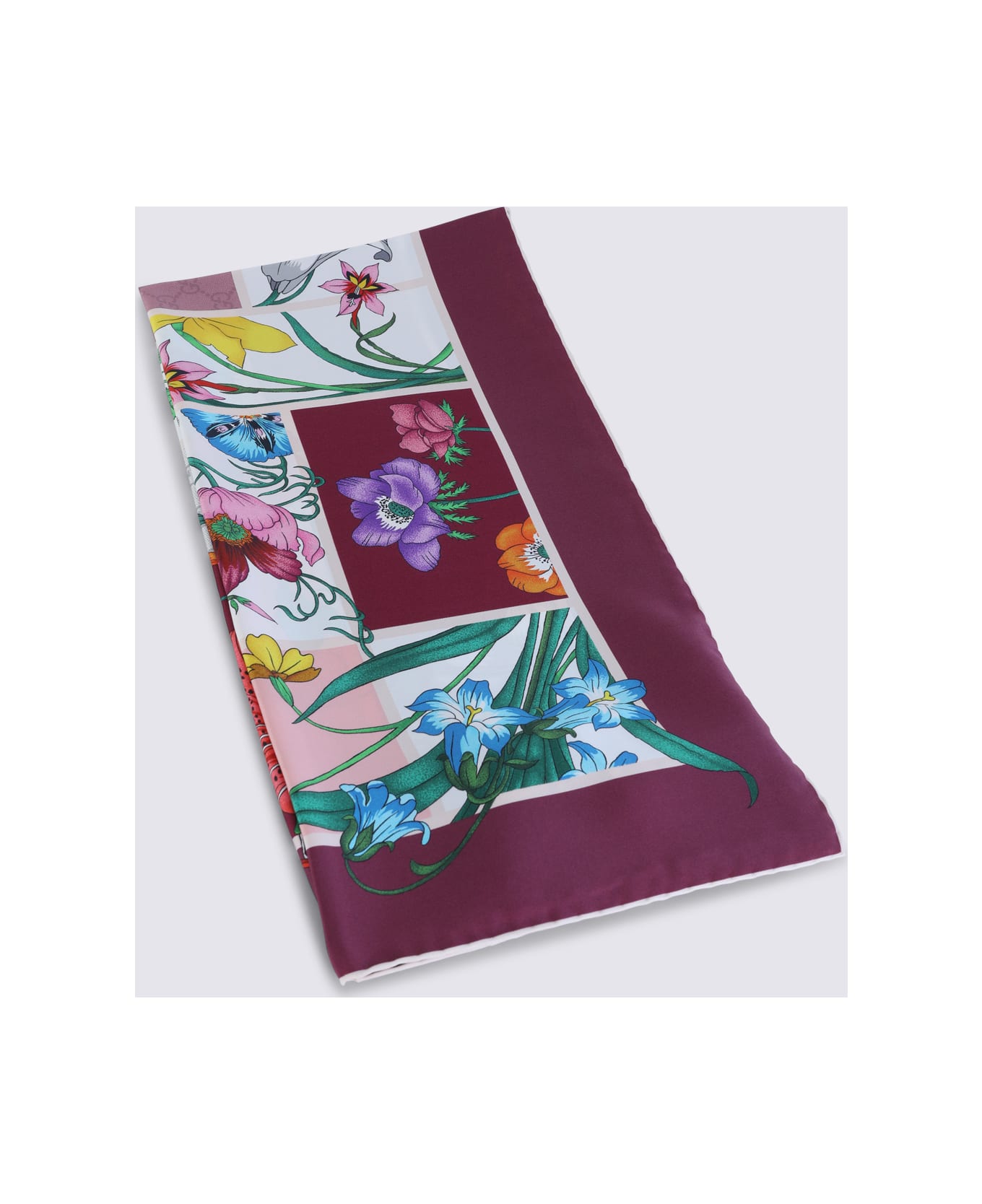 Mauve pink silk scarf from Gucci featuring all over logo print, floreal texture and square shape. Composition: _, 100% Silk