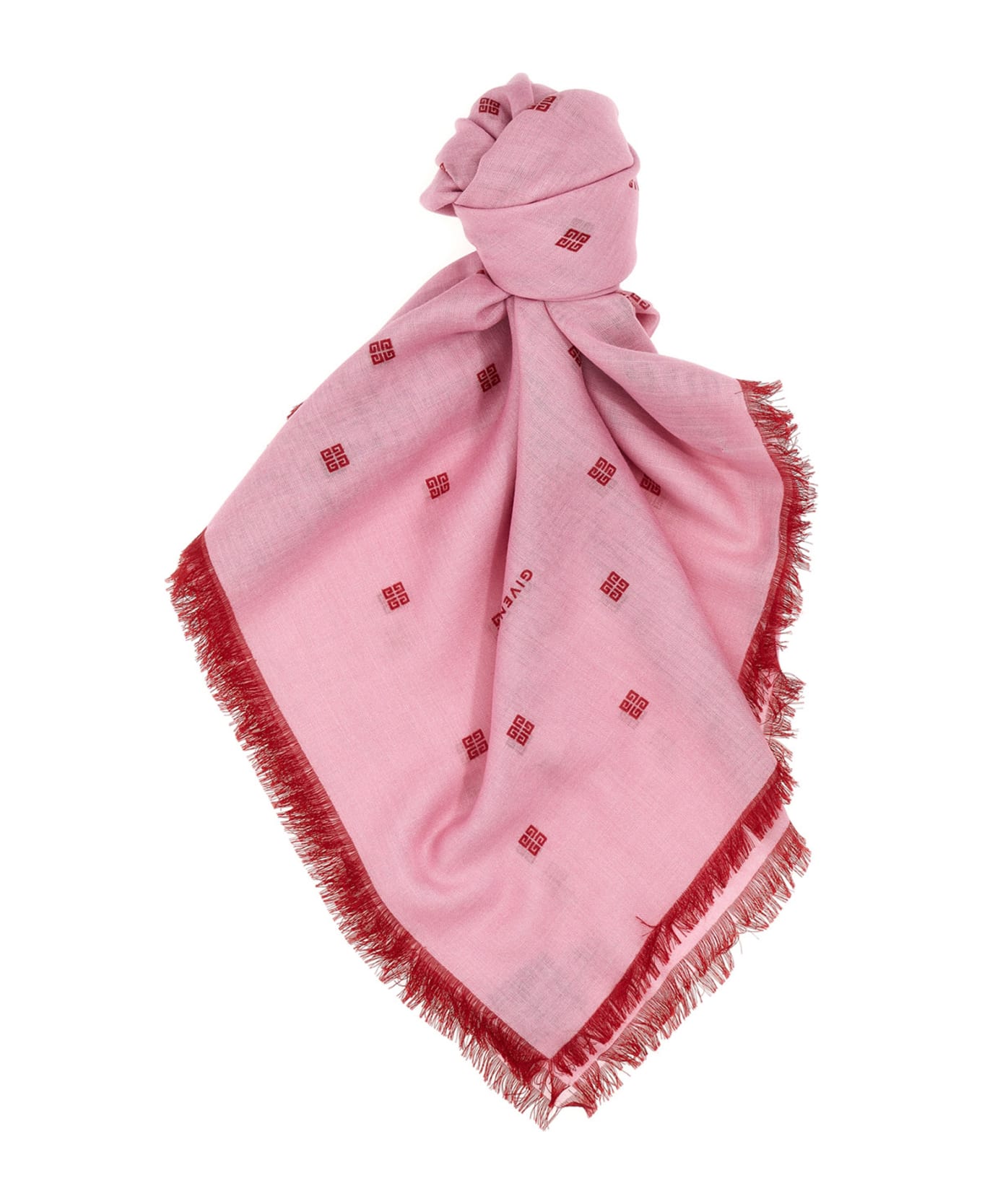 Sciarpa 'Plumetis' in cashmere e seta con stampa logo all-over, frange ai bordi a contrasto. Composition: