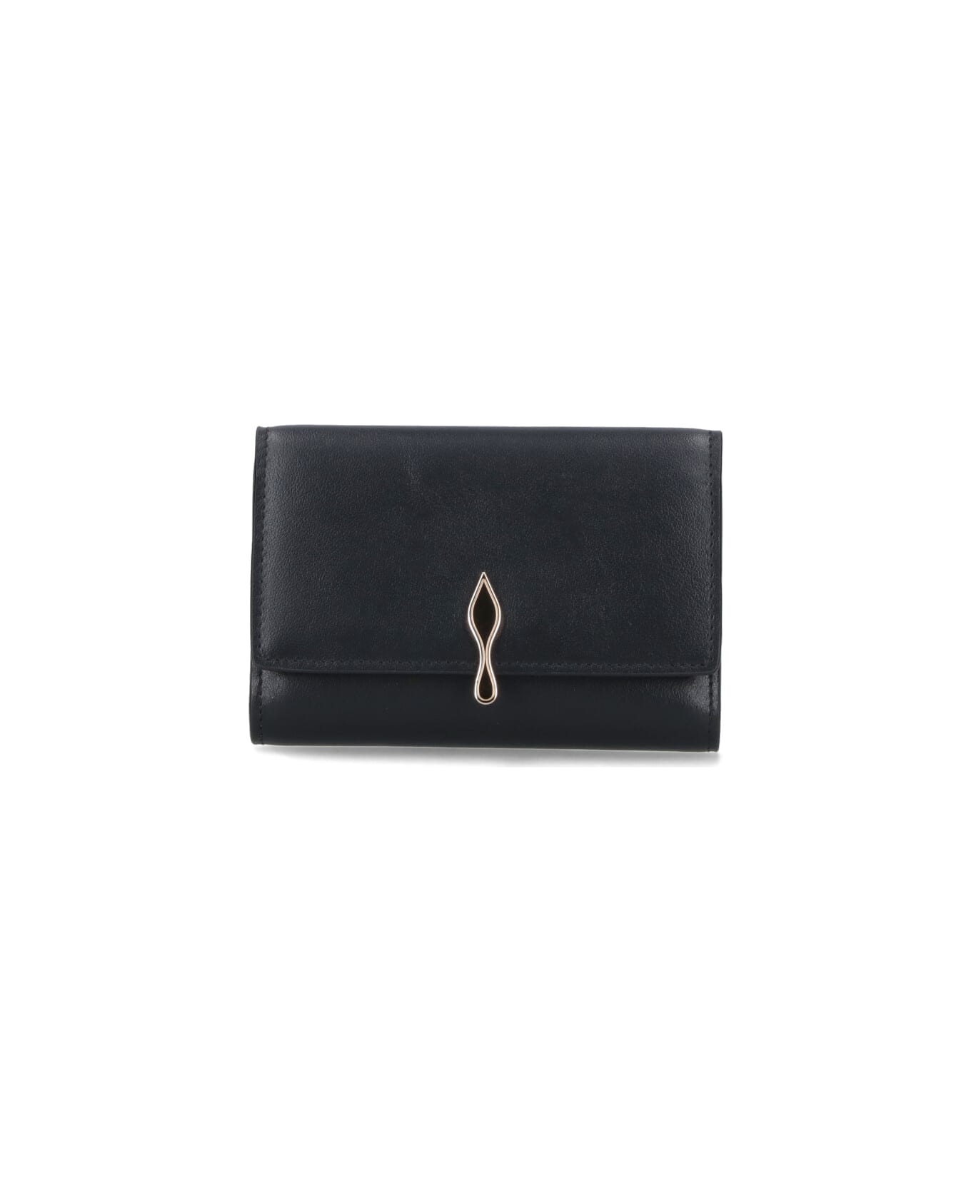 Christian Louboutin bettina wallet in black calf leather on the outside, and red on the inside, "bettina" snap closure, five inner card slots, one outer card slot.