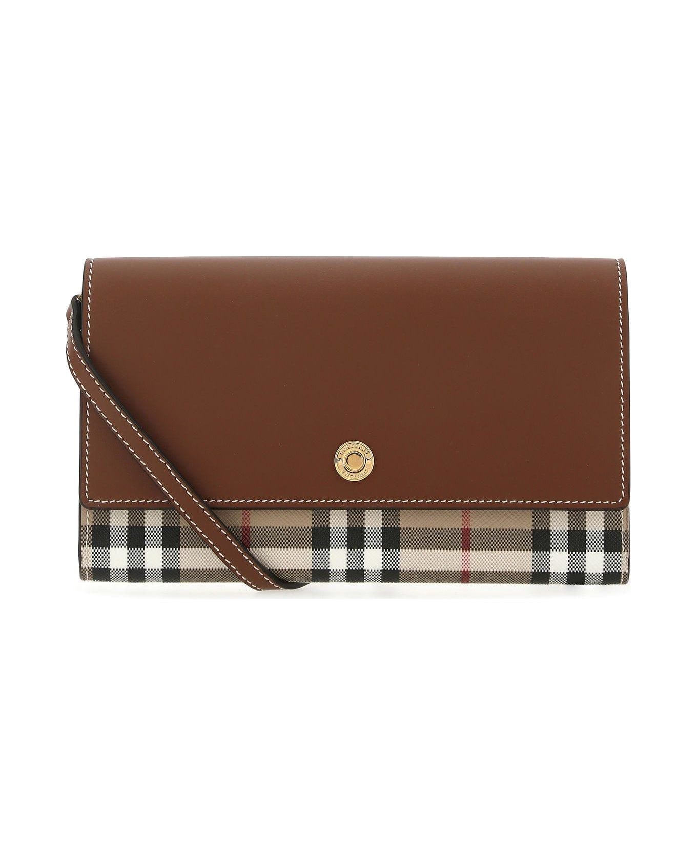 A.beige/tan E-canvas And Leather Wallet from Burberry