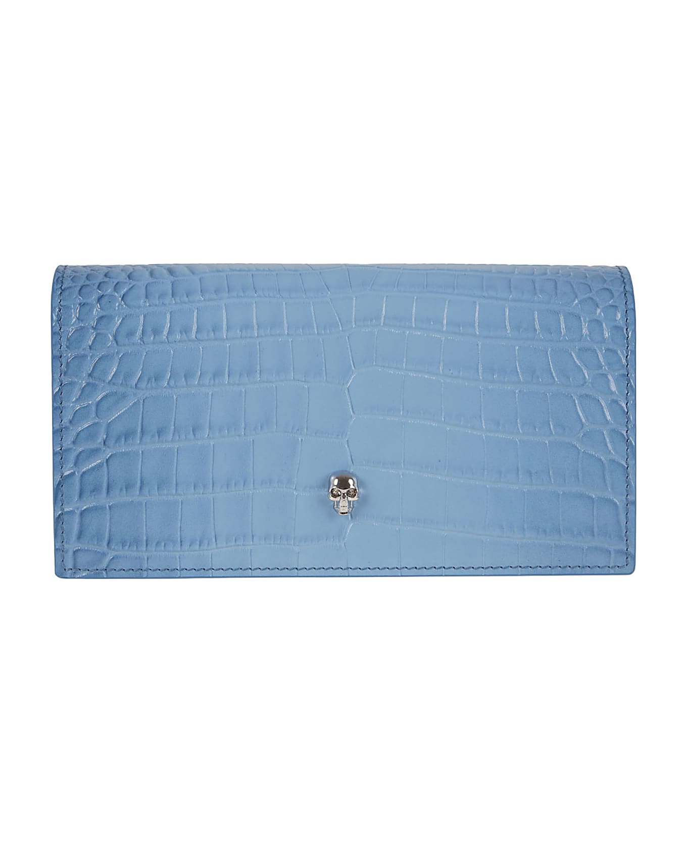 Leather wallet BY ALEXANDER MCQUEEN. Front button closure, embellished with Skull, the brand logo; internal zip pocket, internal compartment for banknotes and internal card slots. Made of crocodile-effect calfskin.