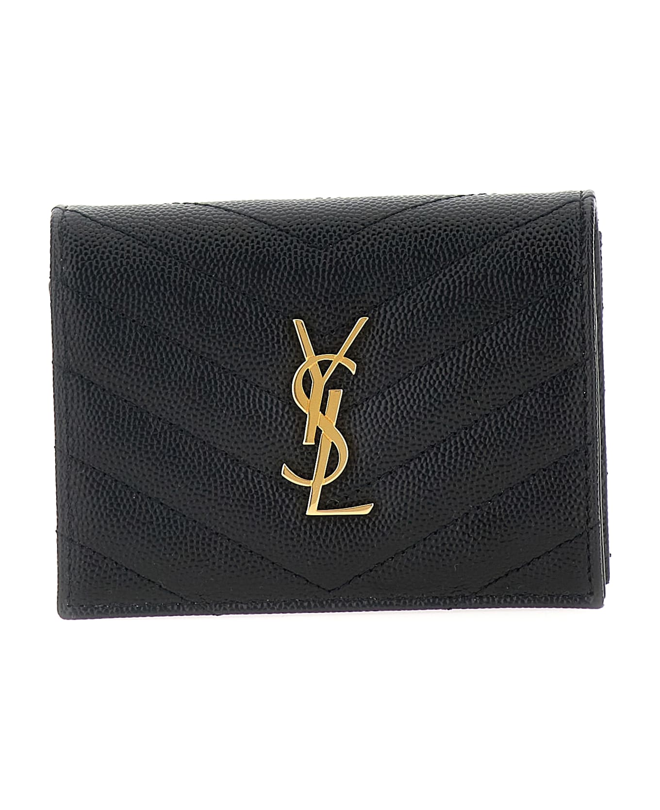 Matalessé leather wallet with metal 'Monogramme' logo appliqué on the front and snap button closure. Composition: