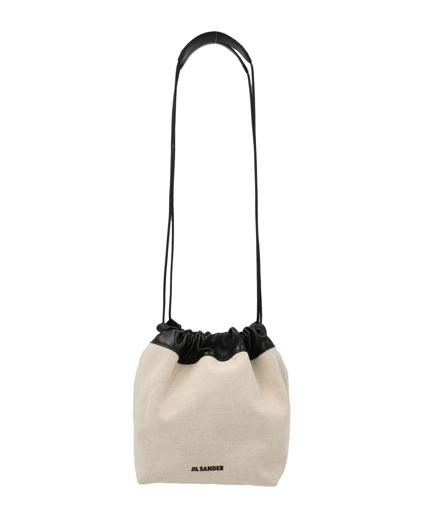 Dumpling' canvas and leather bucket bag with drawstring closure and a front logo print. Composition: 100% calf leather (bos taurus)