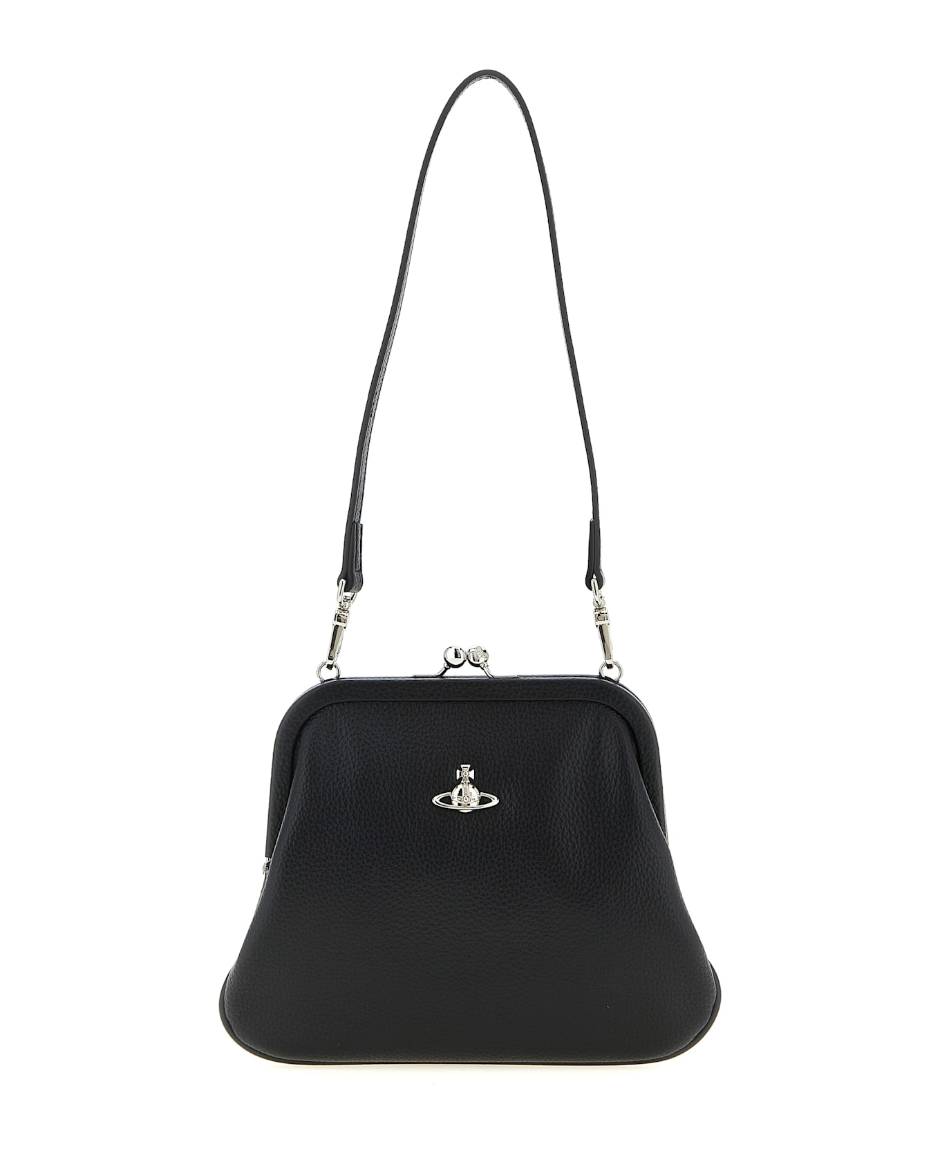 PU Vivienne clutch with hammered finish, front metal Orb logo, snap closure, removable handle. Composition: 100% polyurethane