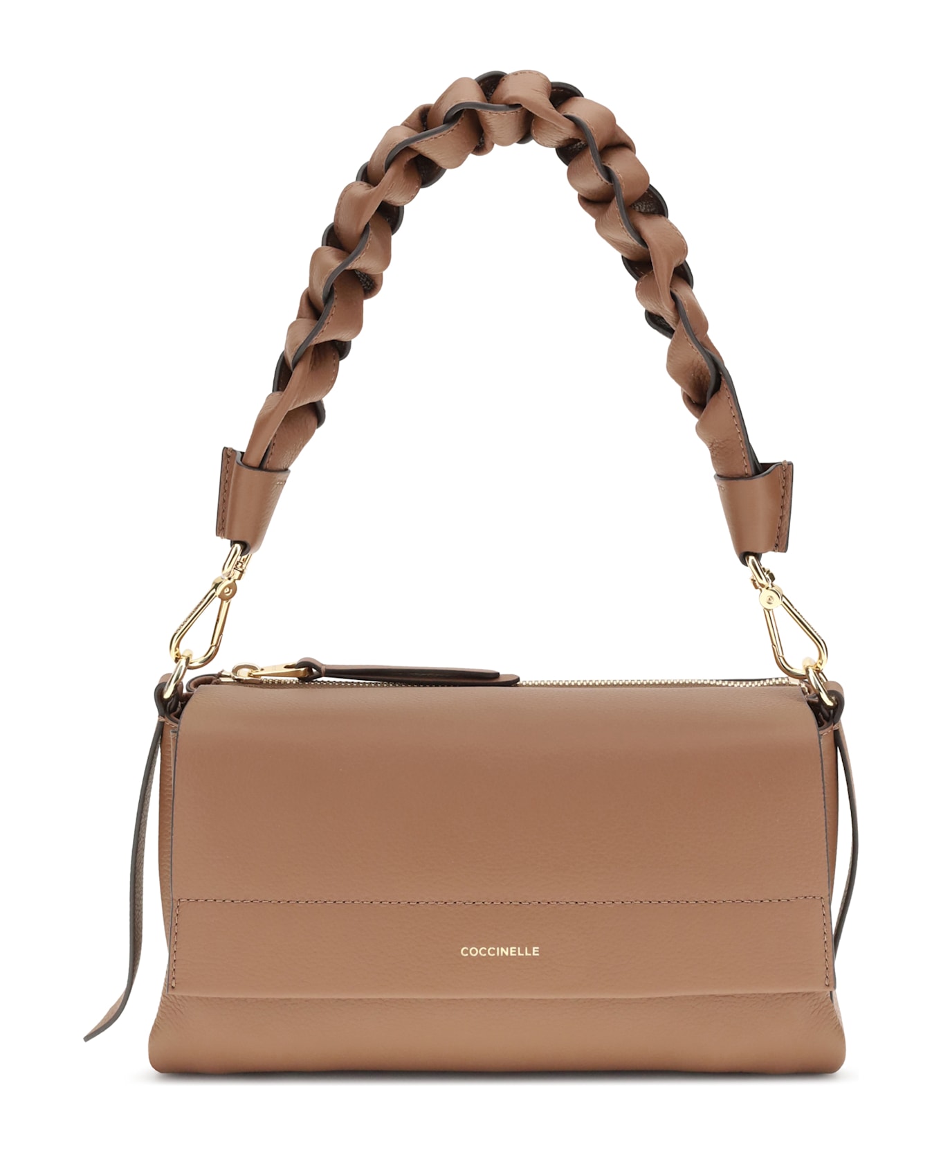The boheme shoulder bag by coccinelle is an accessory with a refined and modern style, designed for casual femininity. made of soft double leather, it stands out for its woven handle, an iconic detail that enhances its contemporary character. it features a practical flap and magnet closure, an internal zip pocket and an external pocket also closed with a zip, for functional organization. the design is completed by the adjustable and removable shoulder strap, which allows for versatile portability, from shoulder to cross-body.