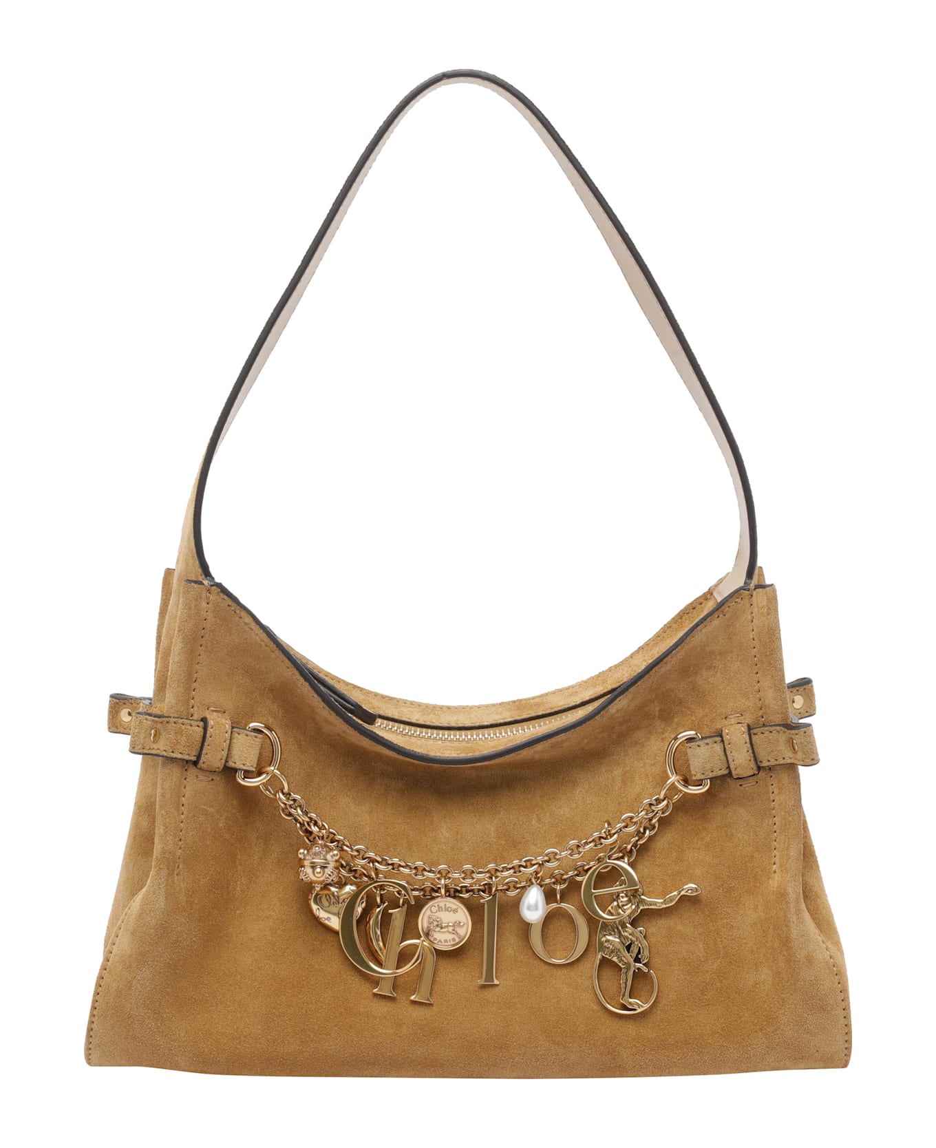 Chloe' gold khaki Chloè Charms shoulder bag, zip closure, inner open pocket, fixed handle
