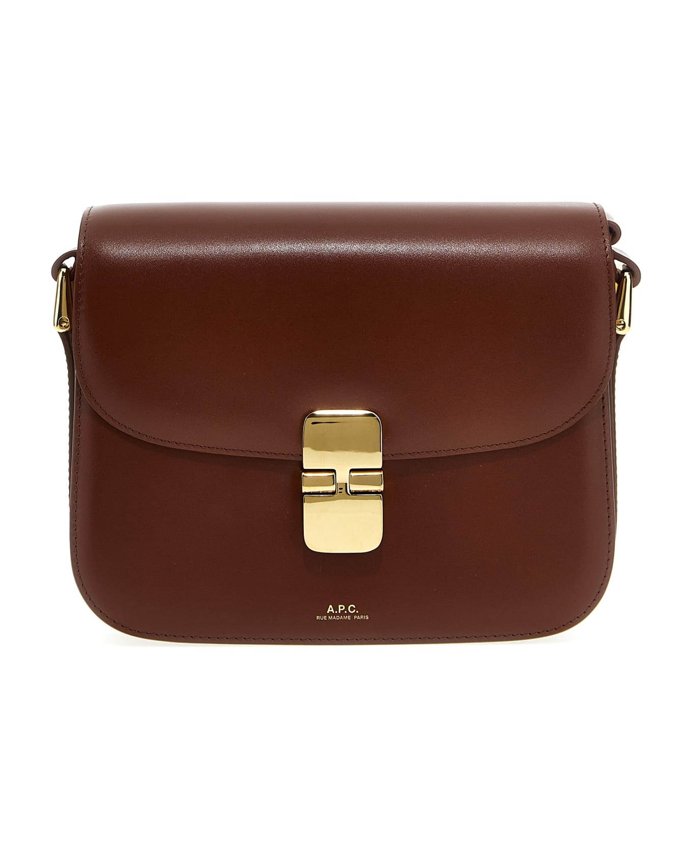 'Grace Small' leather crossbody bag with flap, gold hardware and shoulder strap.