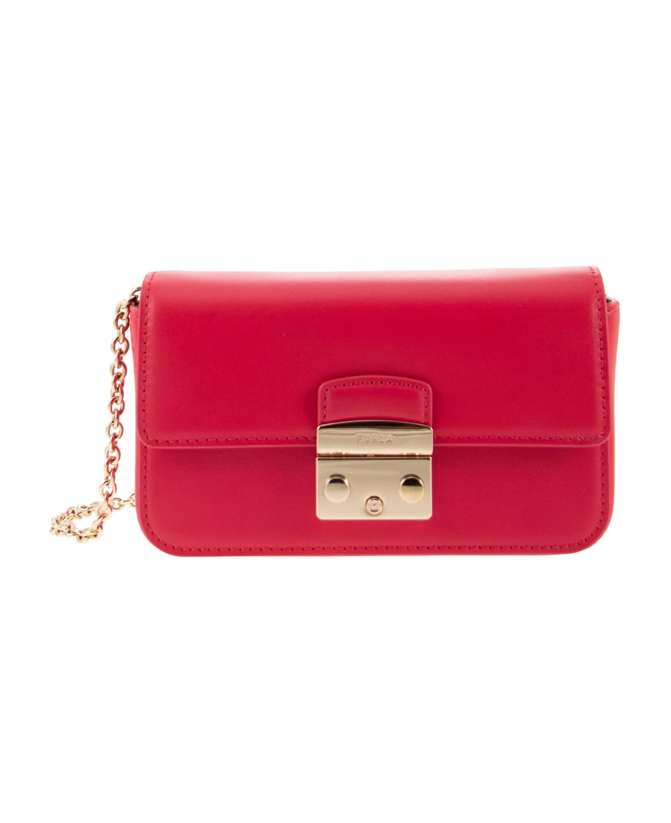 Furla Metropolis is a mini shoulder bag made of soft Roma calfskin. The model is perfect for holding your smartphone, small items and personal effects. - Two lined internal compartments for credit cards and documents - Press stud closure with Furla logo engraving - Removable chain shoulder strap DESIGNER ID: WE00446 AX0733 JUI00