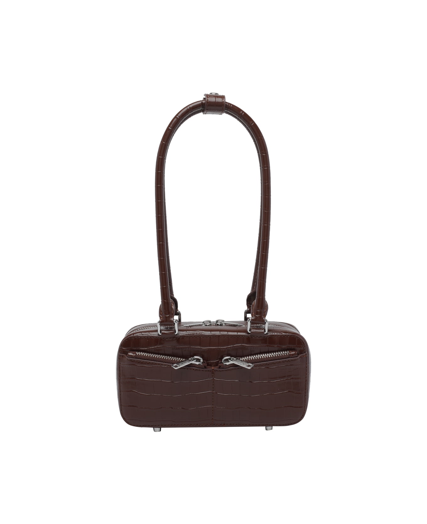 Self Portrait brown Mini croc leather shoulder bag, zip closure, 1 inner slot