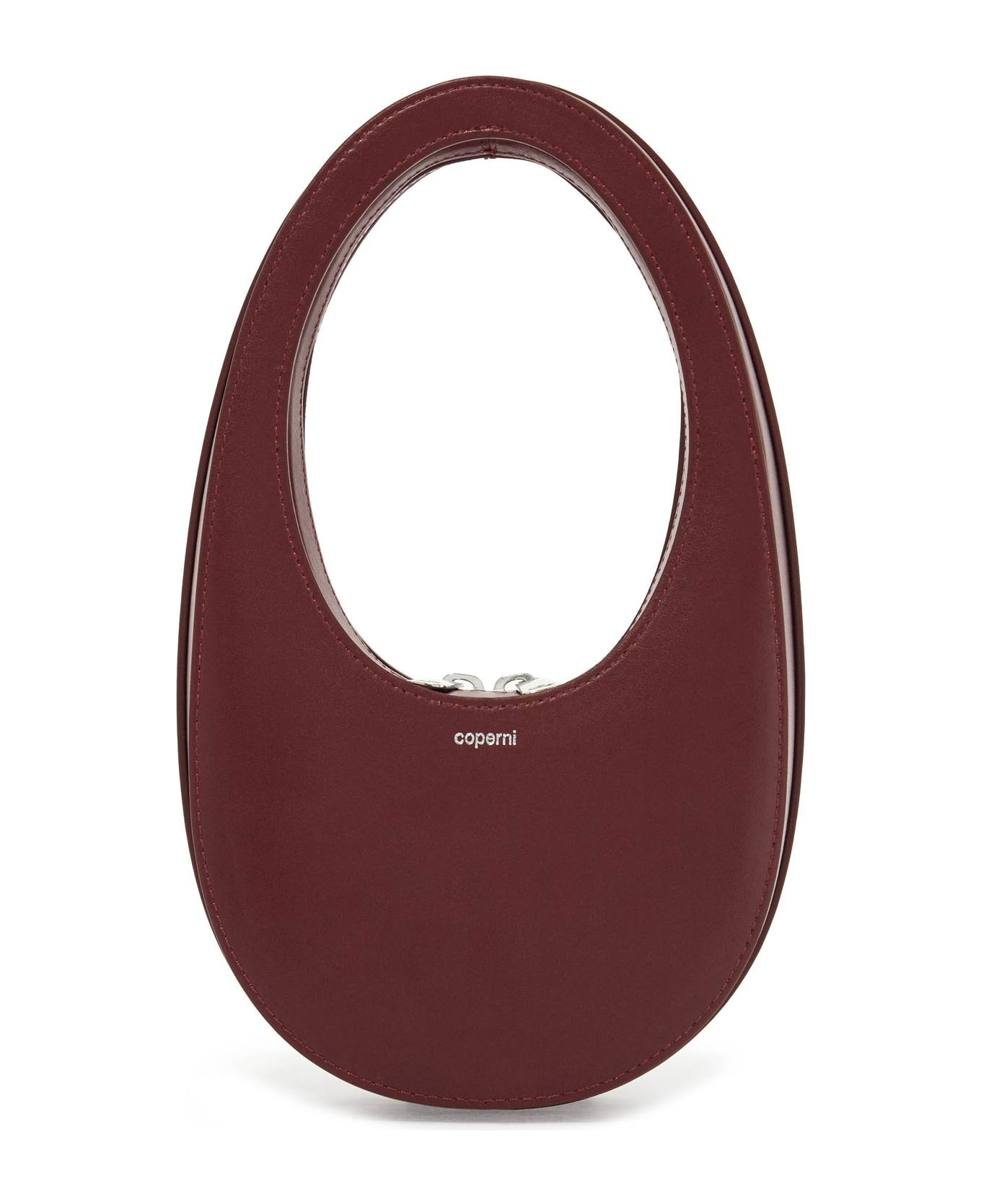 Coperni Mini Swipe leather hobo bag with rigid structure and zip around closure. Silver printed logo on the front, side logo label, leather lining. Steel-tone hardware.