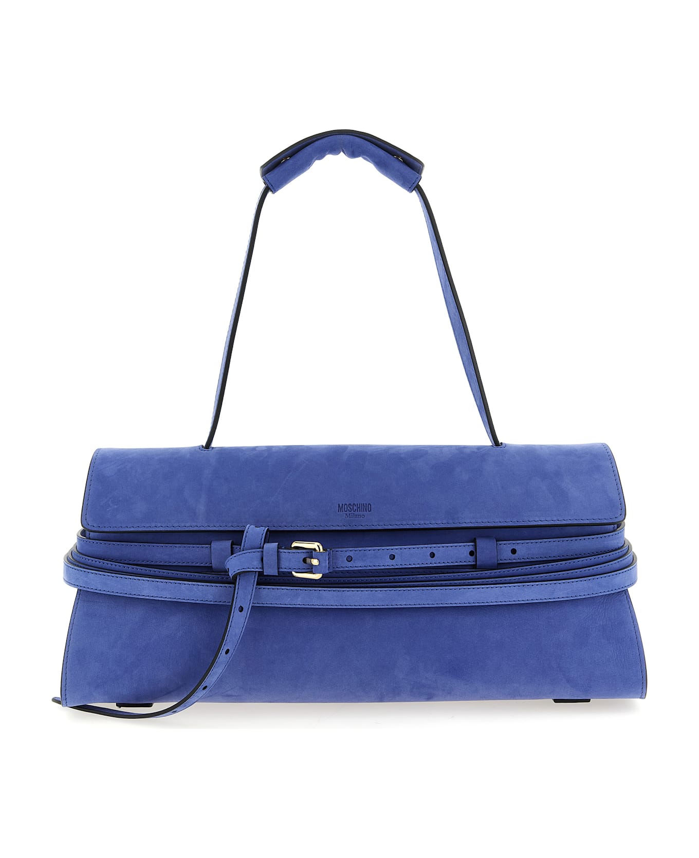 Tie Me suede shoulder bag with front belt detail, front embossed logo, fixed handle, magnetic flap closure. adjustable and removable leather shoulder strap. Composition: 100% calfskin leather (Bos Taurus)