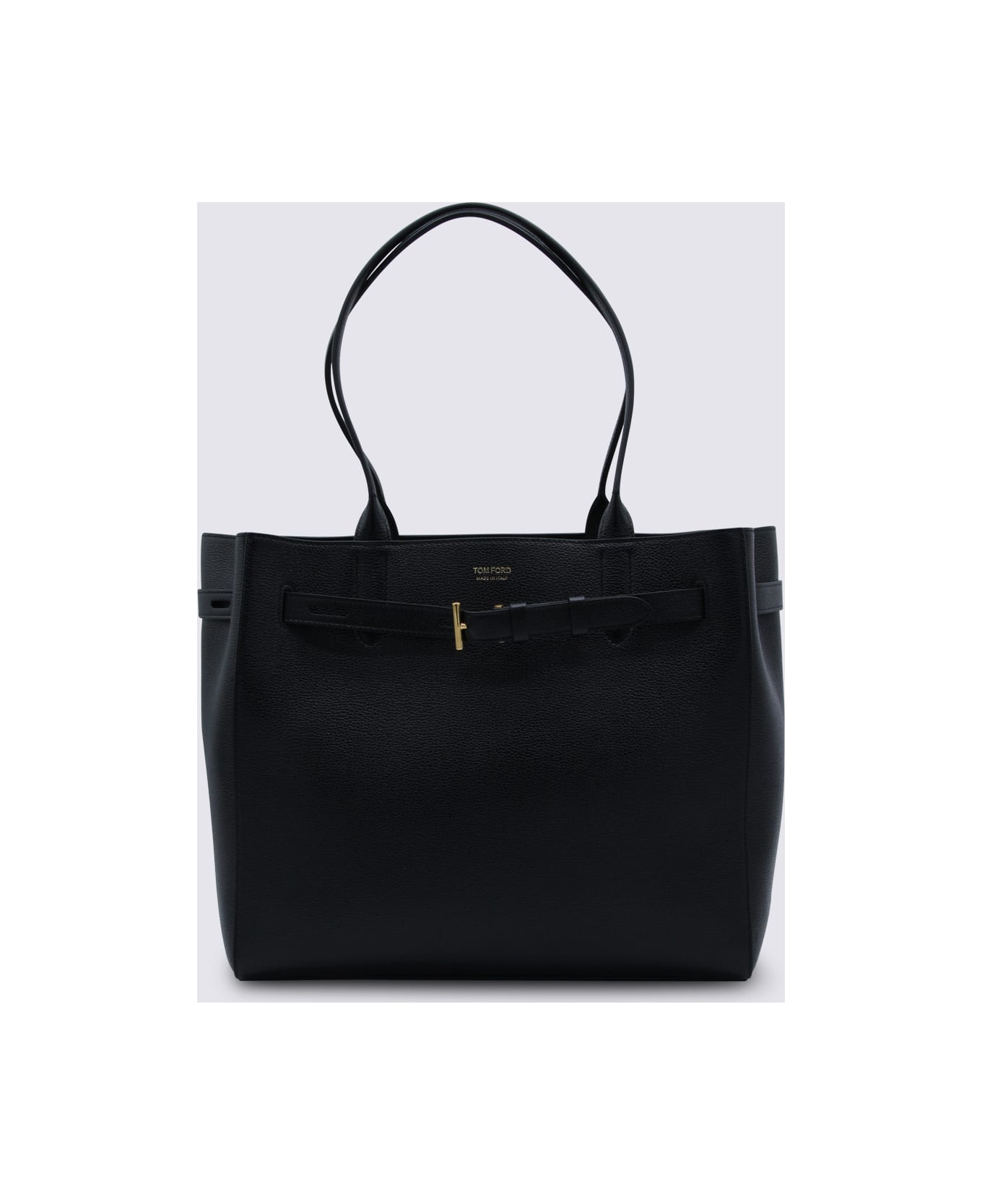 Black leather tote medium bag from Tom Ford featuring double handles, gold tone metal hardware, logo detail at front, main compartment and hidden pocket. Composition: _, 100% Le