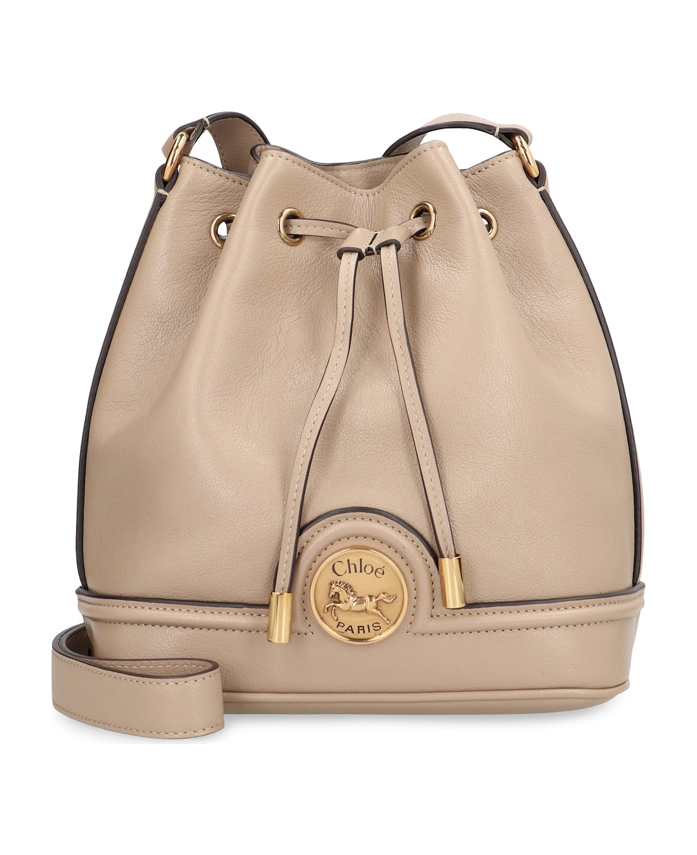Bucket bag made of hammered leather accented with a metallic logo detail on the front. it features a drawstring closure and an internal pocket. the design is completed with elegant details. the shoulder strap is adjustable, offering versatility in wearing it. this bag is ideal for a casual and sophisticated look, perfect for any occasion. width: 24 cm height: 24 cm depth: 14 cm strap: 120 cm 100% cow hide Composition: 100% % Cow Hide