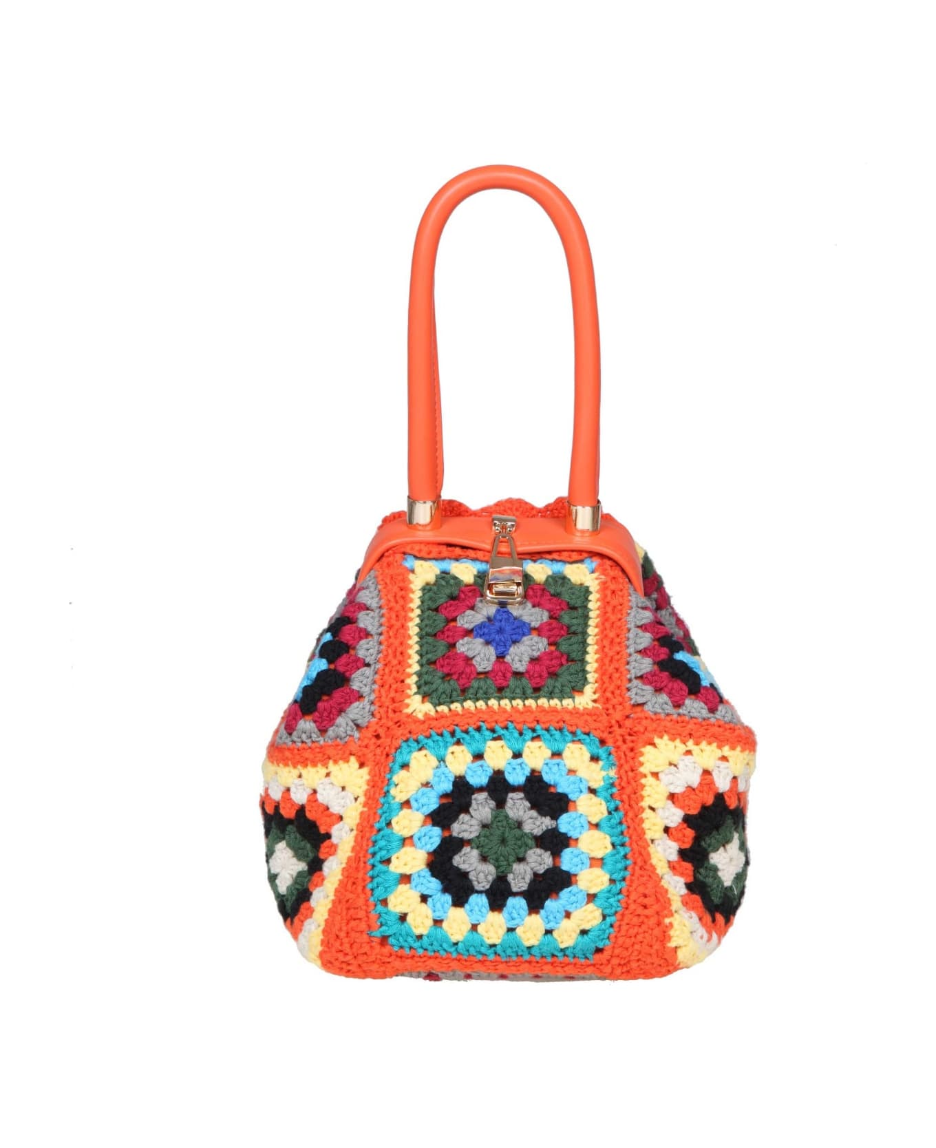 Crochet cotton bag multicolour crochet cotton leather reports raffia interior single internal compartment external composition: polyester and leather measures: width 16cm height 20cm depth 20cm made in italy