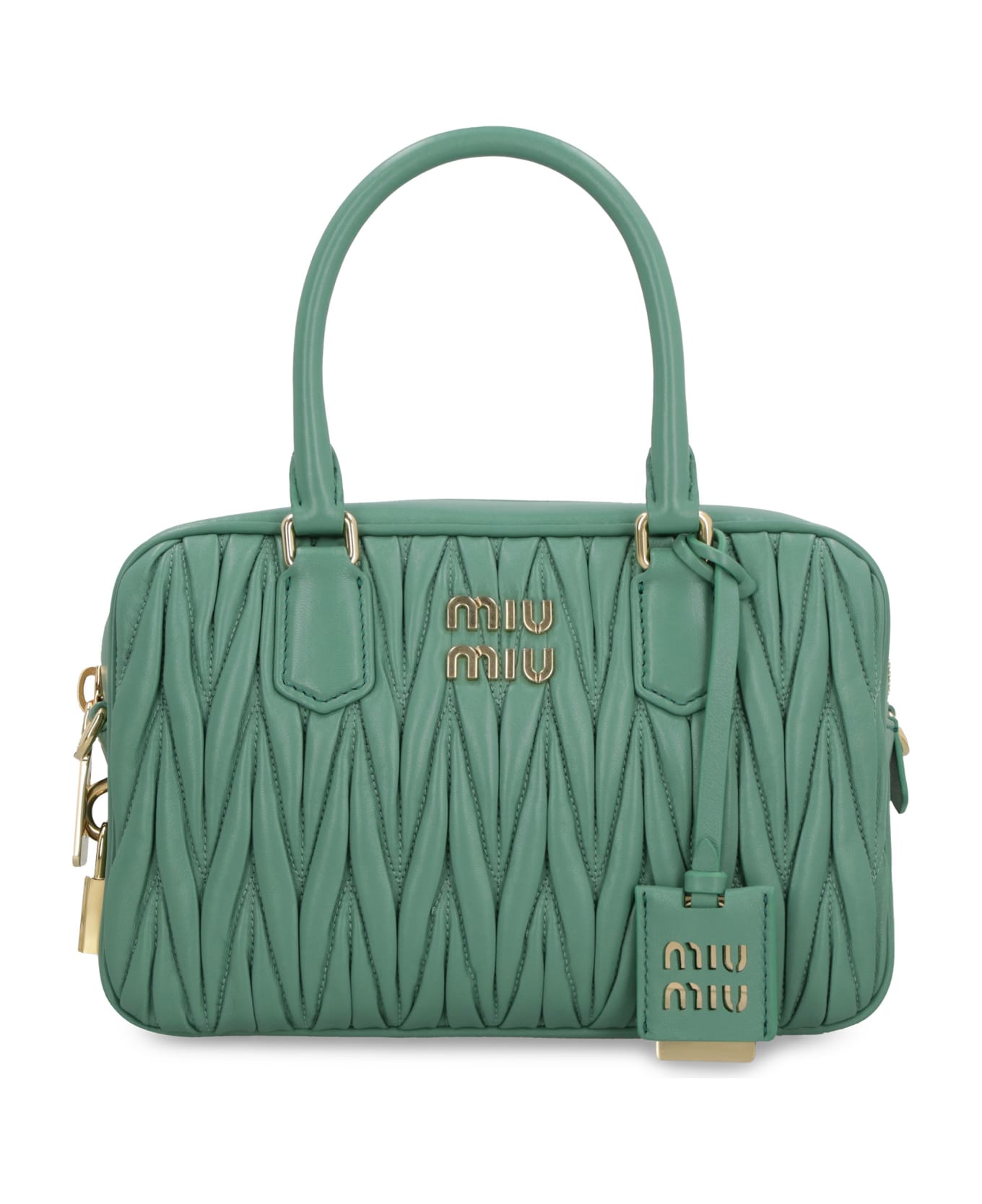 Quilted leather item removable charm with logo top closure with two-way zip fastener two leather handles internal zippered pocket internal flat pocket satin lining removable and adjustable leather shoulder strap protective bottom metal studs gold-tone metal hardware width: 24 cm height: 17 cm depth: 7 cm strap: 112 cm 100% lamb Composition: 100% % Lamb