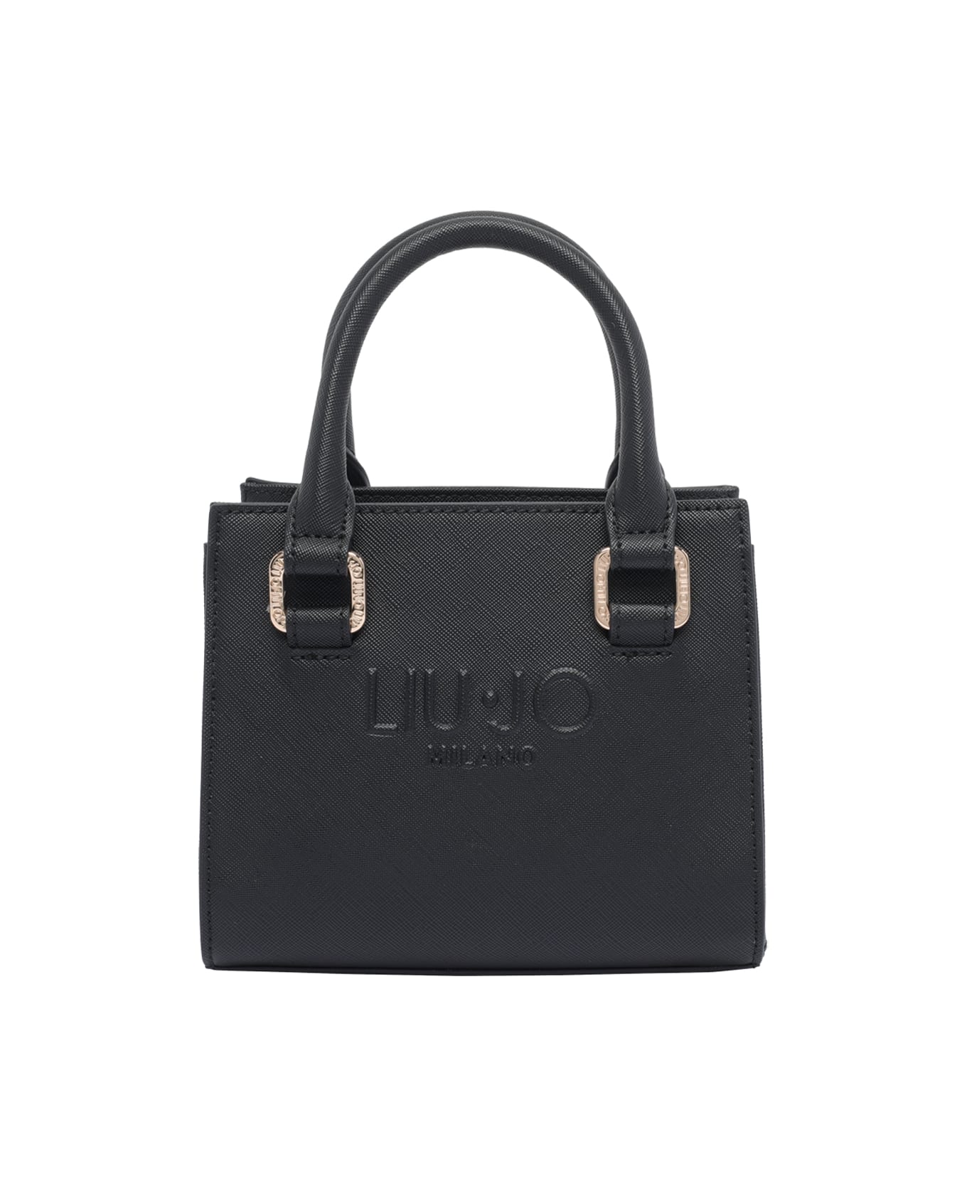 Liu Jo black logo handbag, zip closure, adaptable and removable strap, frontal tone on tone logo
