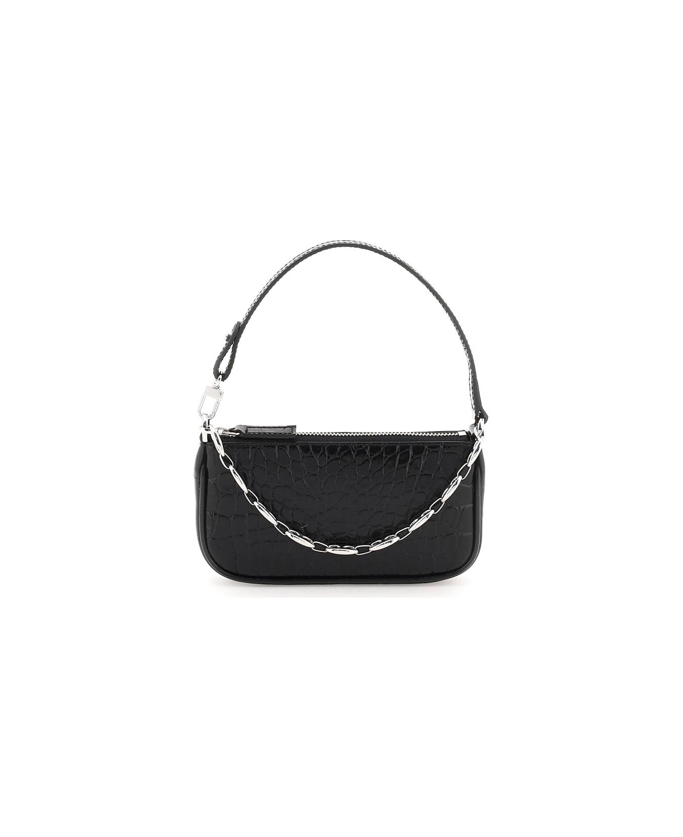 By Far Mini Rachel mini bag in crocodile print leather enriched with a decorative chain on the front. Zip closure, single handle with a snap hook on one side, fabric lining, silver-tone metal parts.