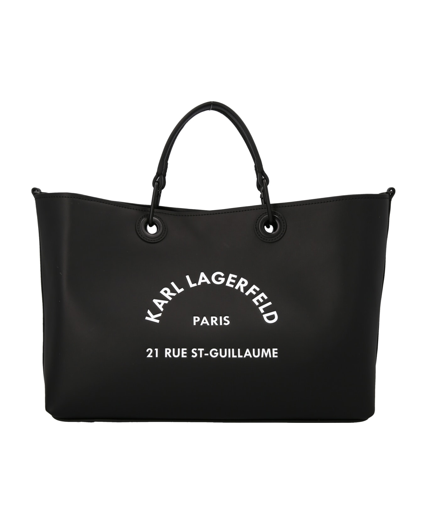'RSG' large leather shopping bag with double removable handle, removable shoulder strap and a front logo.