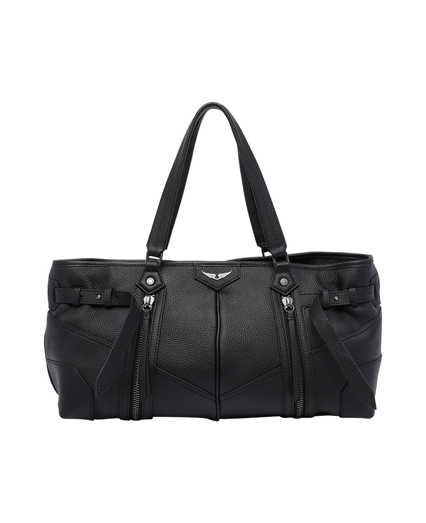 Zadig&Voltaire black Sunny shopping bag, coulisse closure, inner zipped pocket, 2 shoulder straps, frontal logo