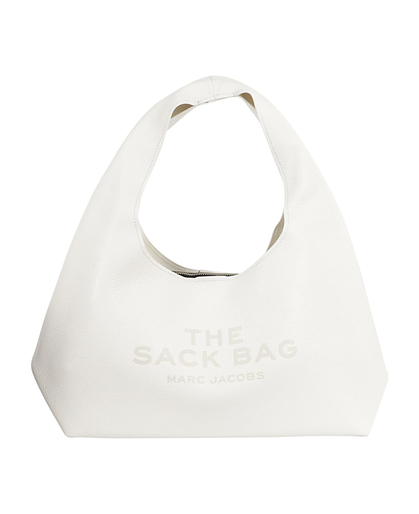 The Sack bag - Marc Jacobs - Argan oil color - Hammered full grain leather workmanship - Single compartment with inside pockets - Top handle - Inside magnetic closure - Front logo embossed tone on tone - Size: 38 cm x 21 cm x 23 cm