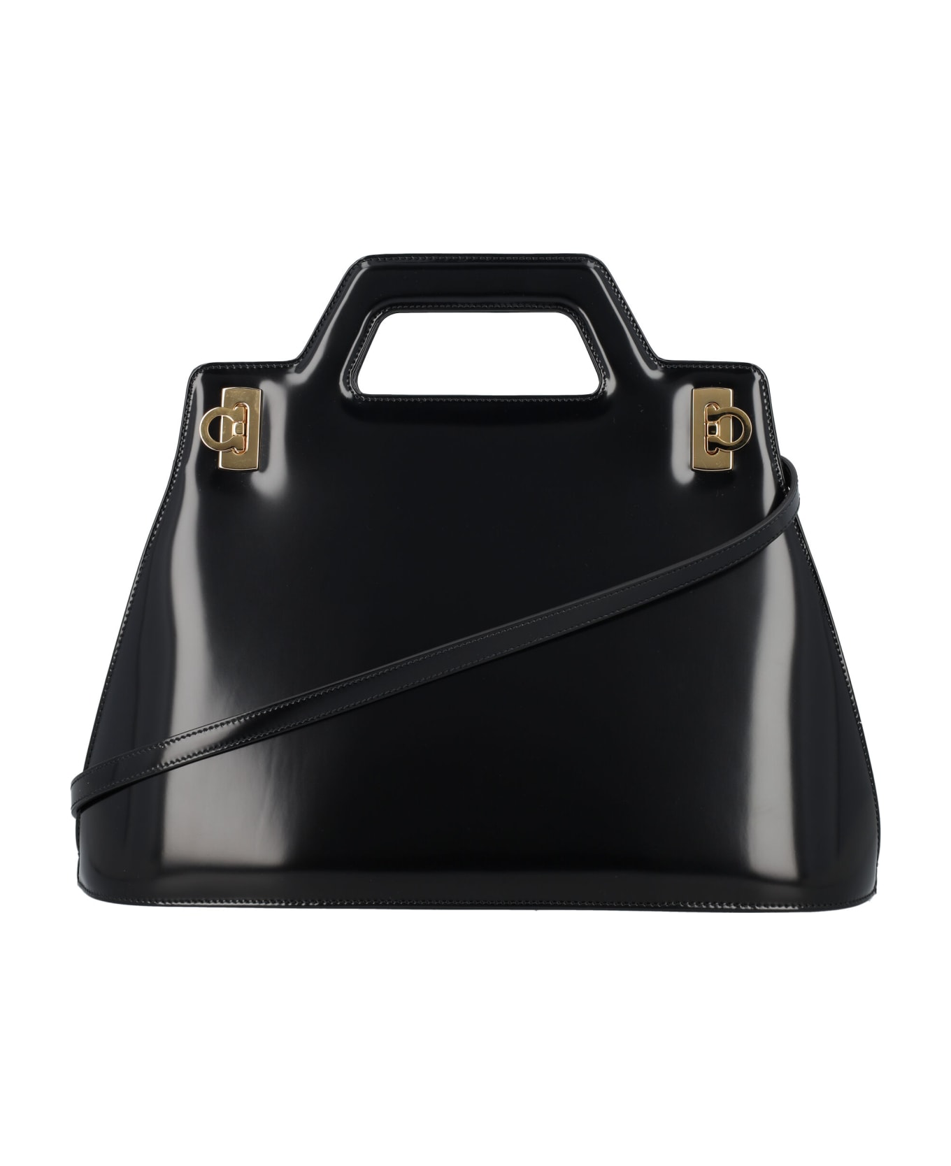 Leather Wanda Medium Hand Bag By Ferragamo. Featuring: Geometric Lines With Rigid Panels Decorated By Handcrafted Airbrush Detailing Top Handle Gancini Openings Main Comparment Double Flat Pocket Inside Detachable Shoulder Strap Height: 29 Cm Width: 36 Cm Depth: 9 Cm