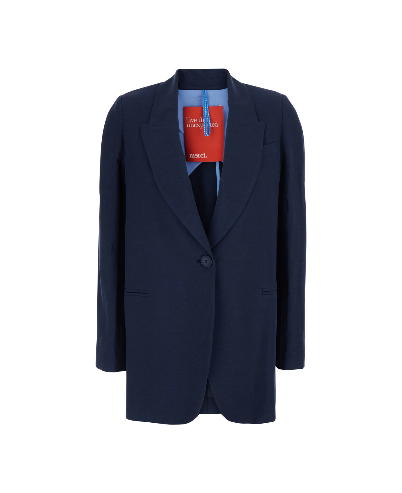 Blue Single-breasted Jacket With Peak Revers In Fabric Women