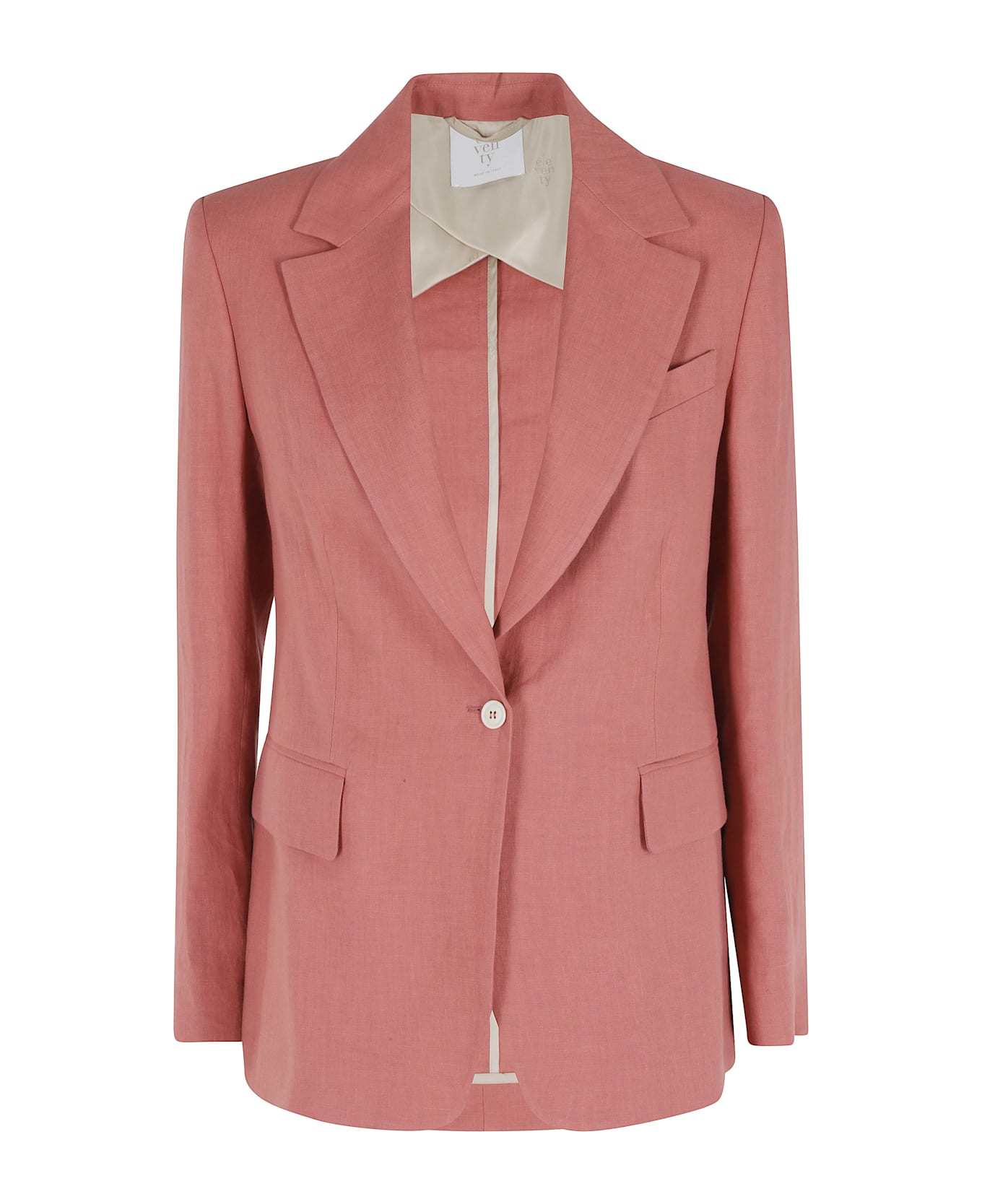 Category: Jacket Item: Single-breasted blazer jacket Brand: Eleventy Color: Coral Details: One button, front pockets Closure: Single-breasted SIZE AND FIT Fit: Regular Length: Long Sleeve Length: Long