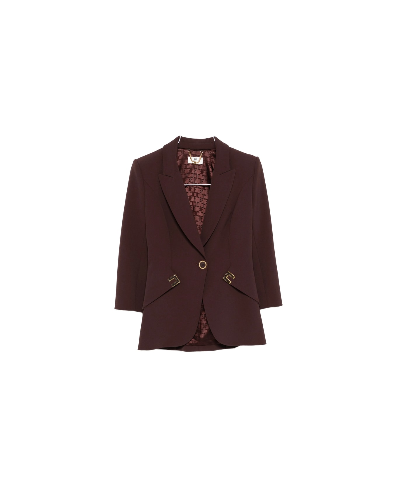 brown peak lapels logo plaque front button fastening three-quarter length sleeves
