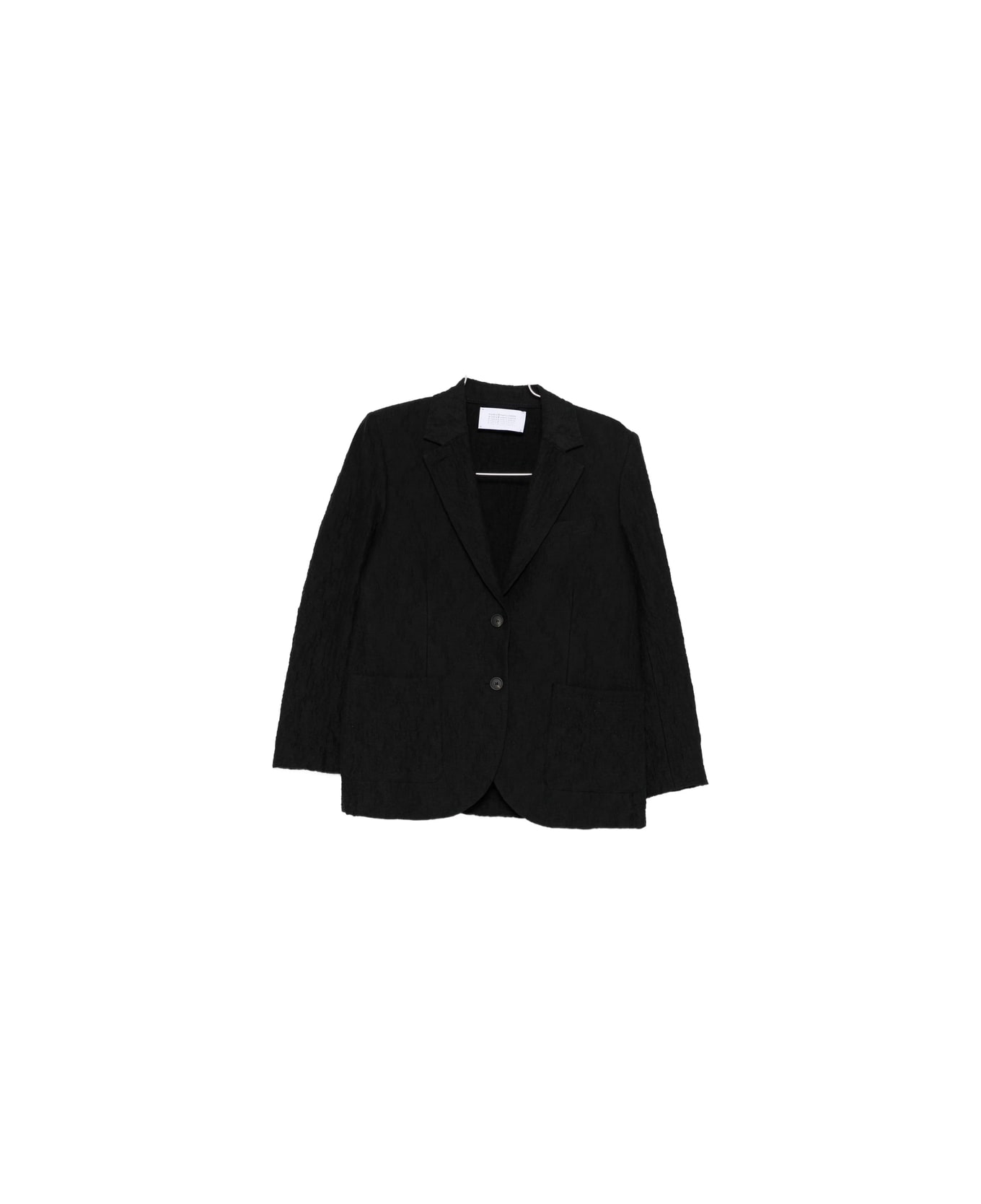 black textured effect front button fastening peak lapels front flap pockets long sleeves