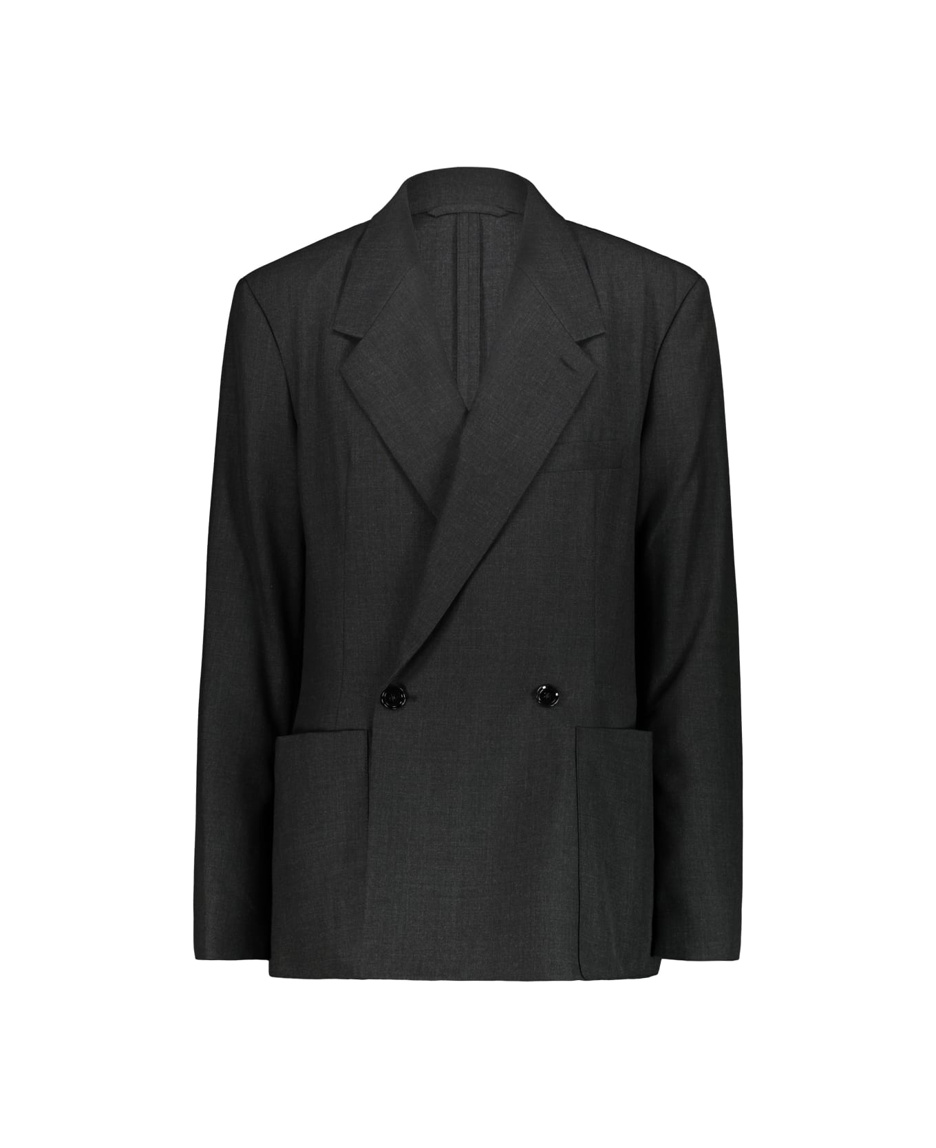 Lemaire soft tailored jacket in wool blend ,double-breasted, structured shoulder, comfortable fit, two patch pockets