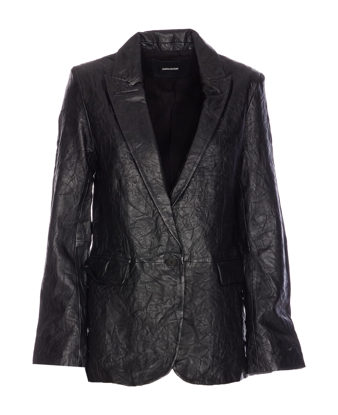 Zadig&Voltaire black Valse leather jacket with frontal button closure, long sleeves, pockets, V-neck, reinforced shoulder, wrinkled effect Composition: 100% Lamb Leather, 100% Cotton, 100% Polyester