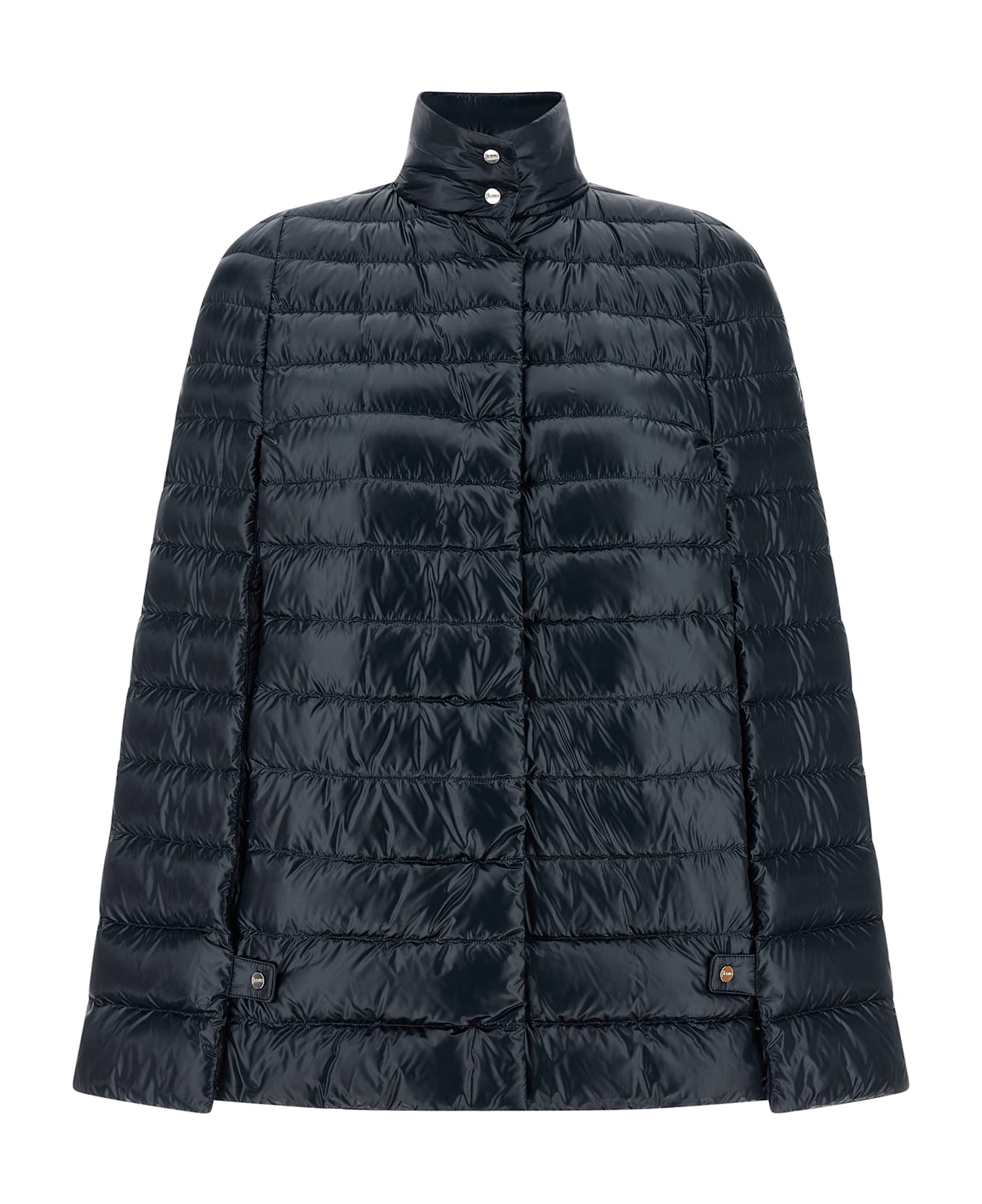 Ultralight nylon cape down jacket, goose down padding and quilted, vertical front slits for the arms with logo automatic and front closure with automatics. Composition: 100% polyamide