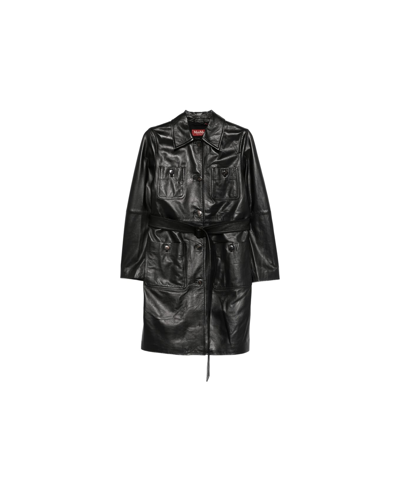 black chest pockets belt detail button fastening long sleeves