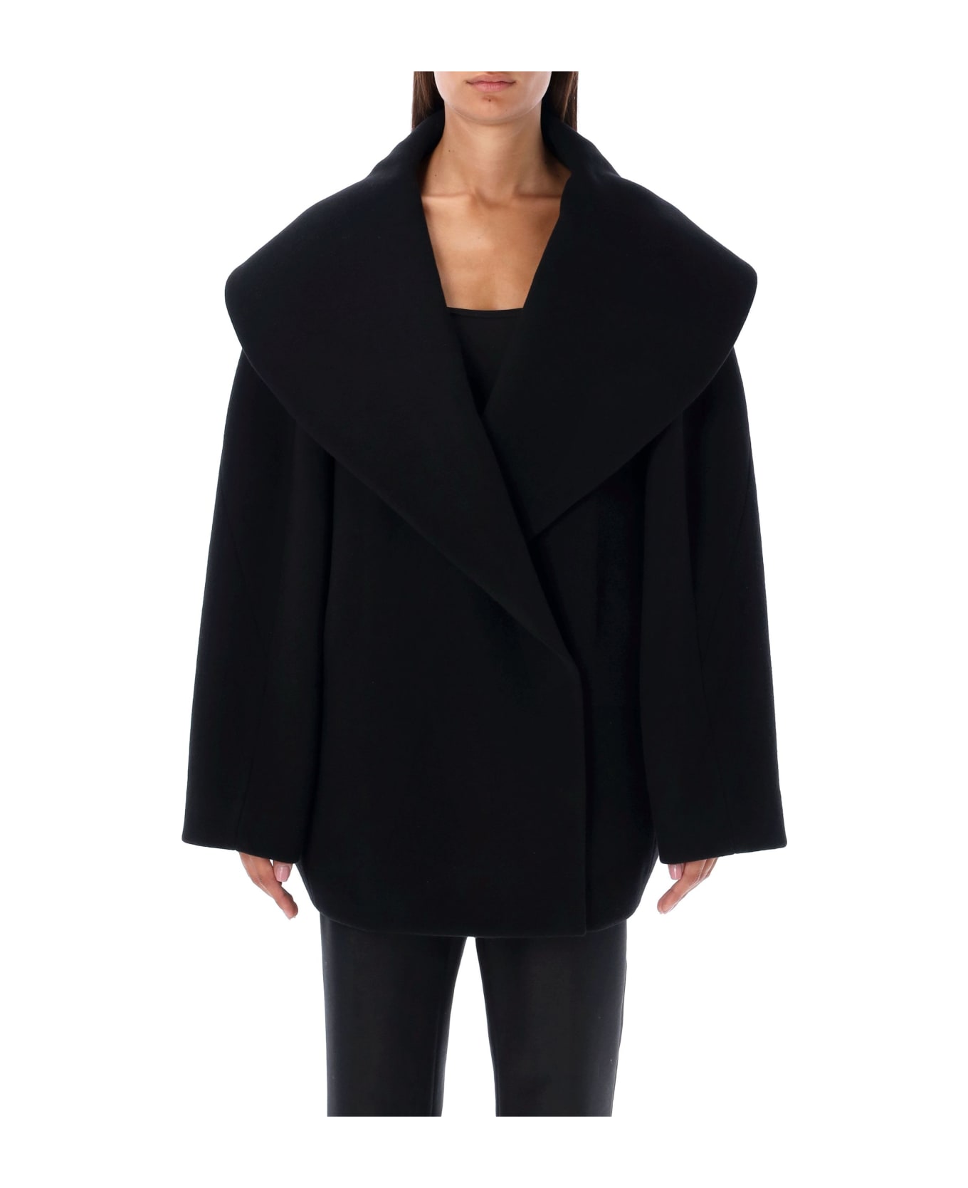 Round Caban Coat By Alaïa. Featuring: V-neck Long Sleeves Concealed Snap Button Closure Side Zipped Pockets Flared At Back Model Is 1,72 M Tall And He Is Wearing Size 36