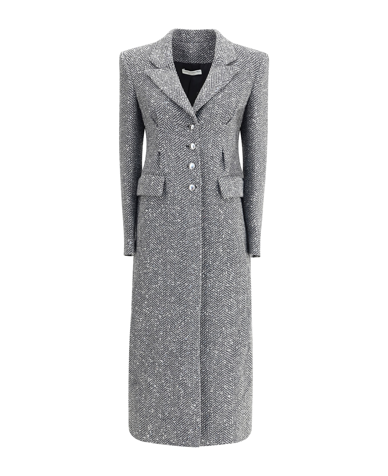 Alessandra rich's tweed long coat stands out for its elegant and timeless style. featuring peaked lapels and a front closure with jeweled buttons, it features two flap welt side pockets, perfect for combining functionality and sophistication.