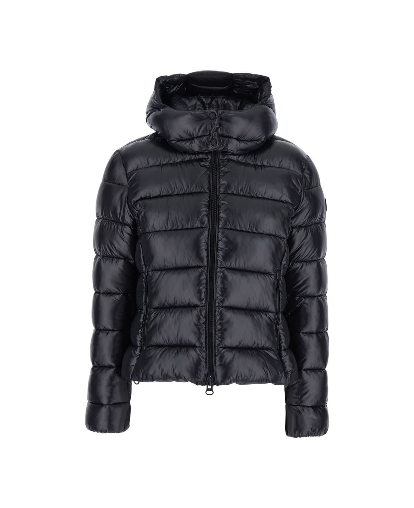 'cosmary' Black Down Jacket With Removable Hood And Logo Patch On The Sleeve In Tech Fabric Woman