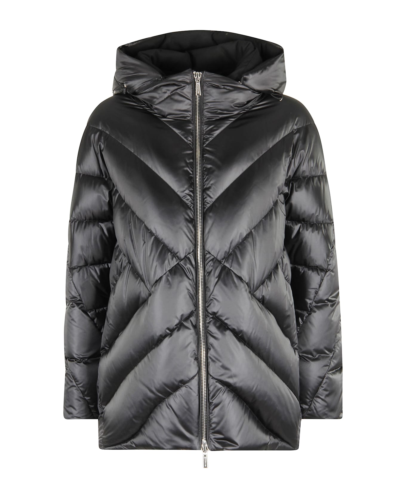 Wanita down jacket - Moorer - Black color - Shiny quilted fabric - Removable hood - Flat pockets - Front zipper closure - Boxy pattern